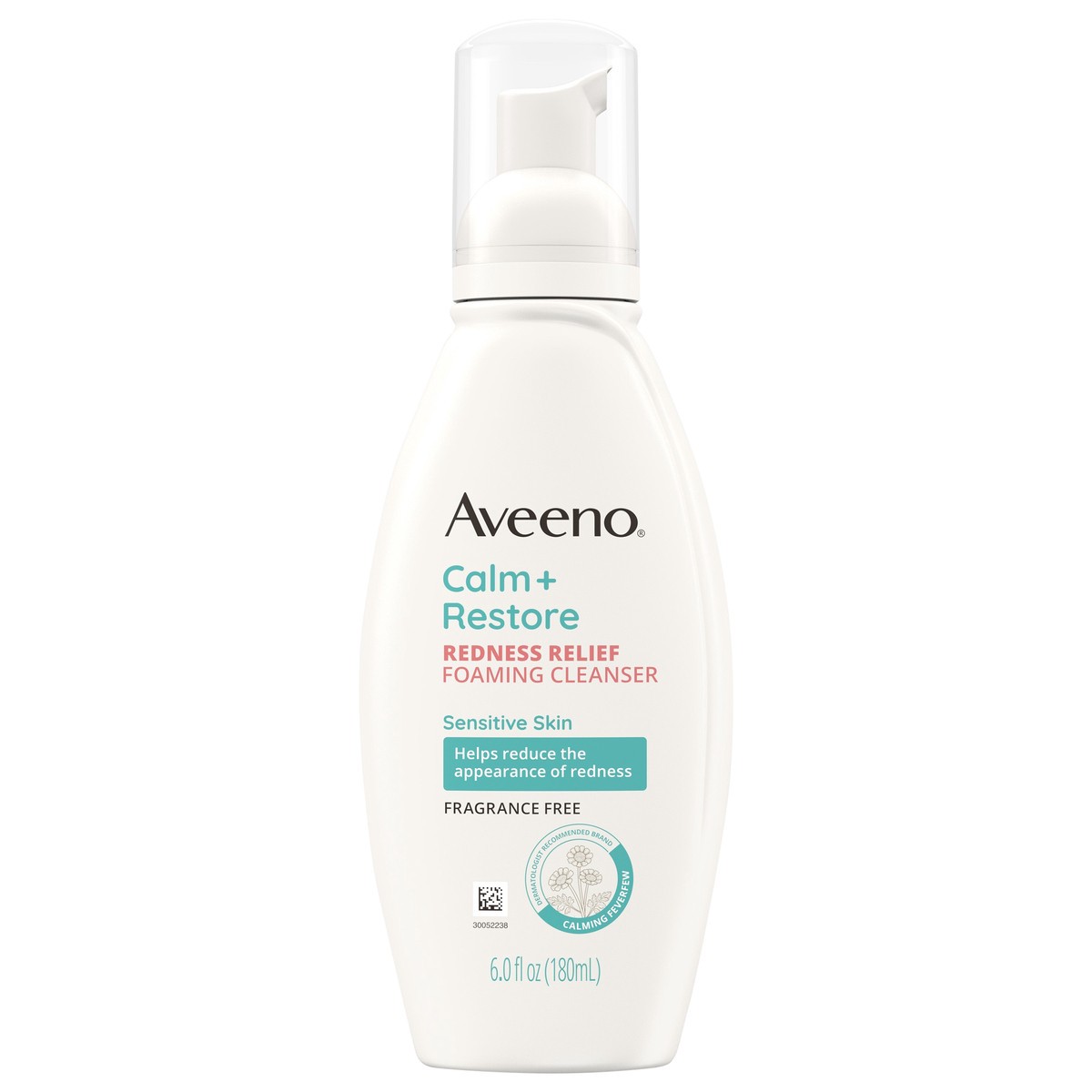 Aveeno Calm + Restore Redness Relief Foaming Cleanser, Daily Facial Cleanser With Calming Feverfew to Help Reduce the Appearance of Redness, Hypoallergenic & Fragrance-Free, 6 fl. oz