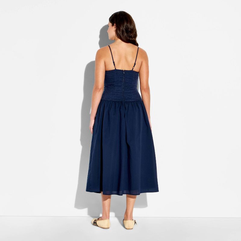 Women's High Neck Dropped Waist Midi A-Line Dress - Wild Fable™ Navy Blue XS