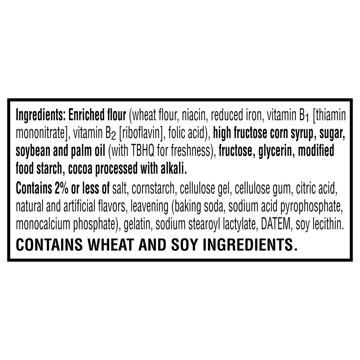 Enriched Flour (Wheat Flour, Niacin, Reduced Iron, Vitamin B₁ [Thiamin Mononitrate], Vitamin B2 [Riboflavin], Folic Acid), High Fructose Corn Syrup, Sugar, Soybean and Palm Oil (with TBHQ for Freshnes…