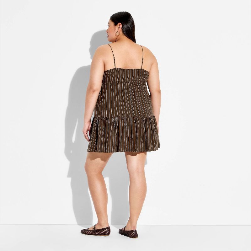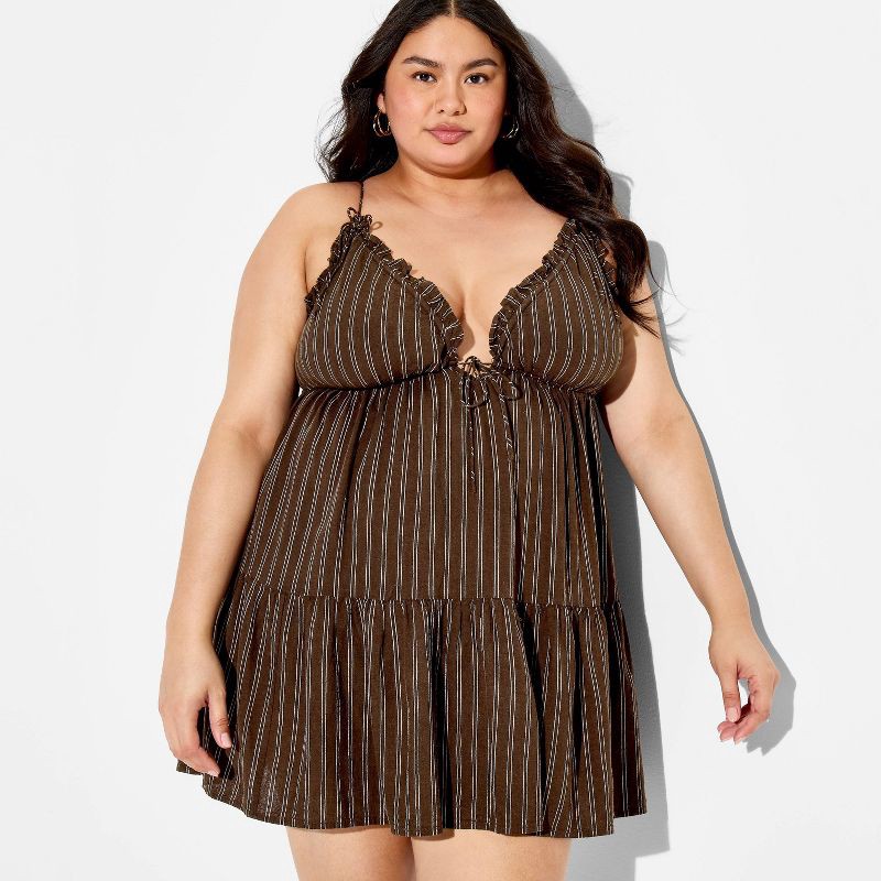 Women's Ruffle Triangle Cup Mini Babydoll Dress - Wild Fable™ Brown Striped XXL