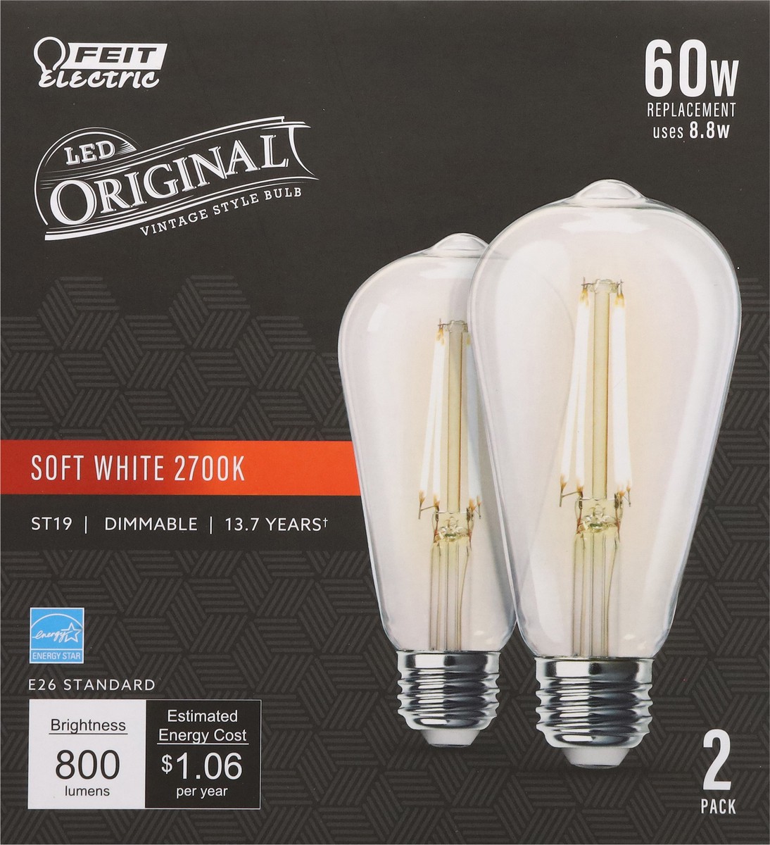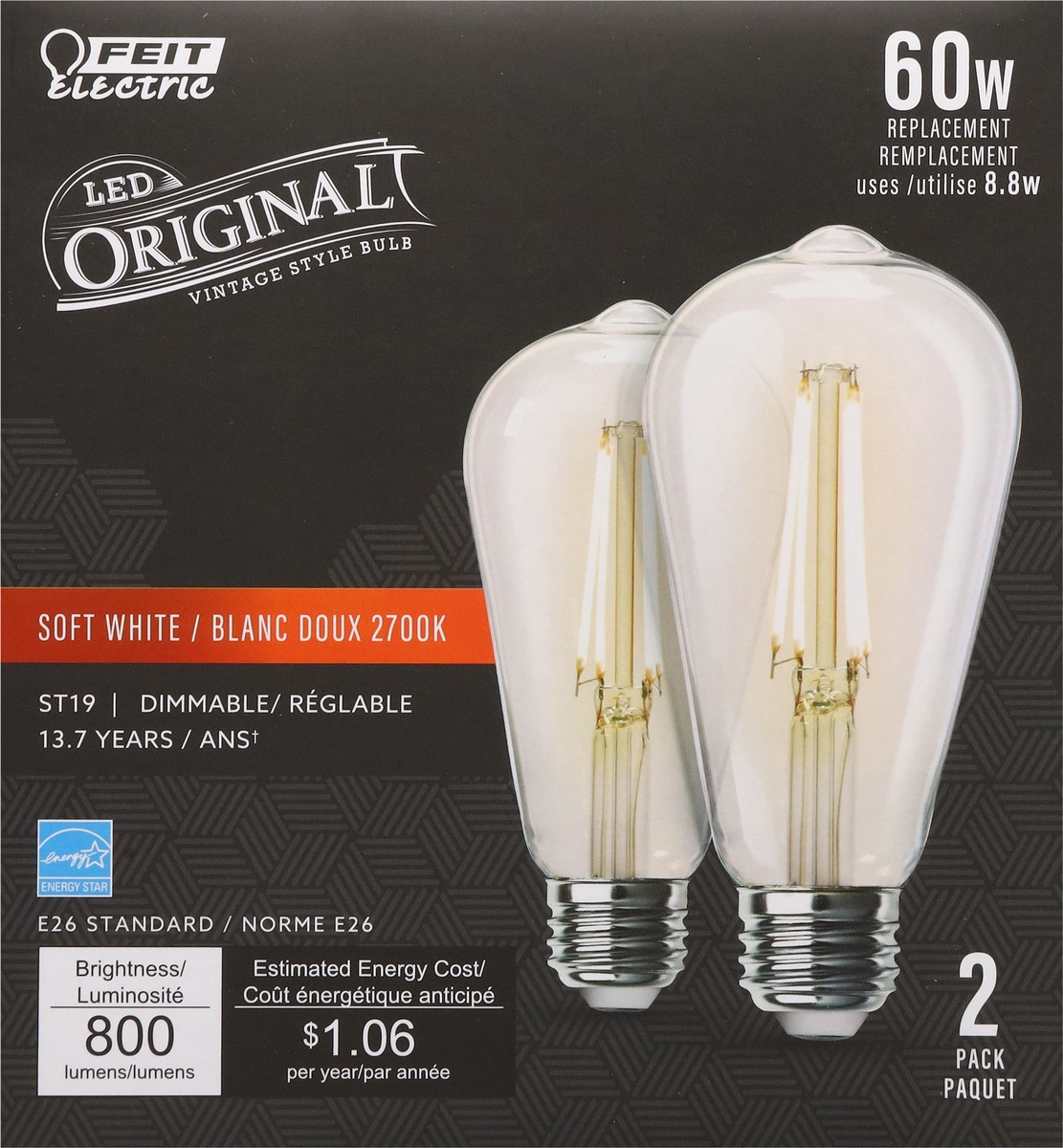 Feit Electric Vintage ST19 60-Watt Clear Glass LED Light Bulbs