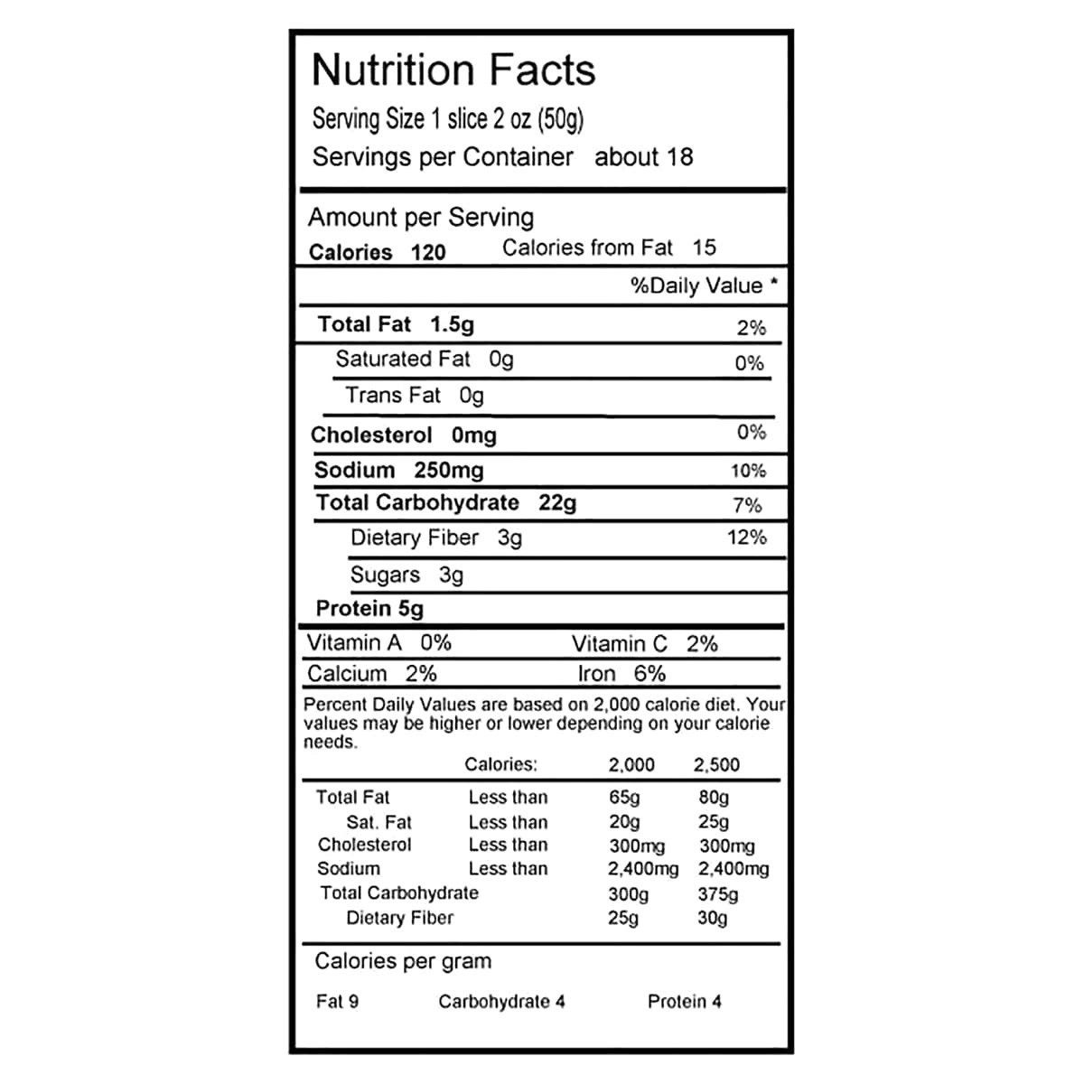Whole Wheat Flour, Water, Sugar, Pumpkin Seeds, Sunflower Seeds, Flax Seeds, Yeast, and Salt.