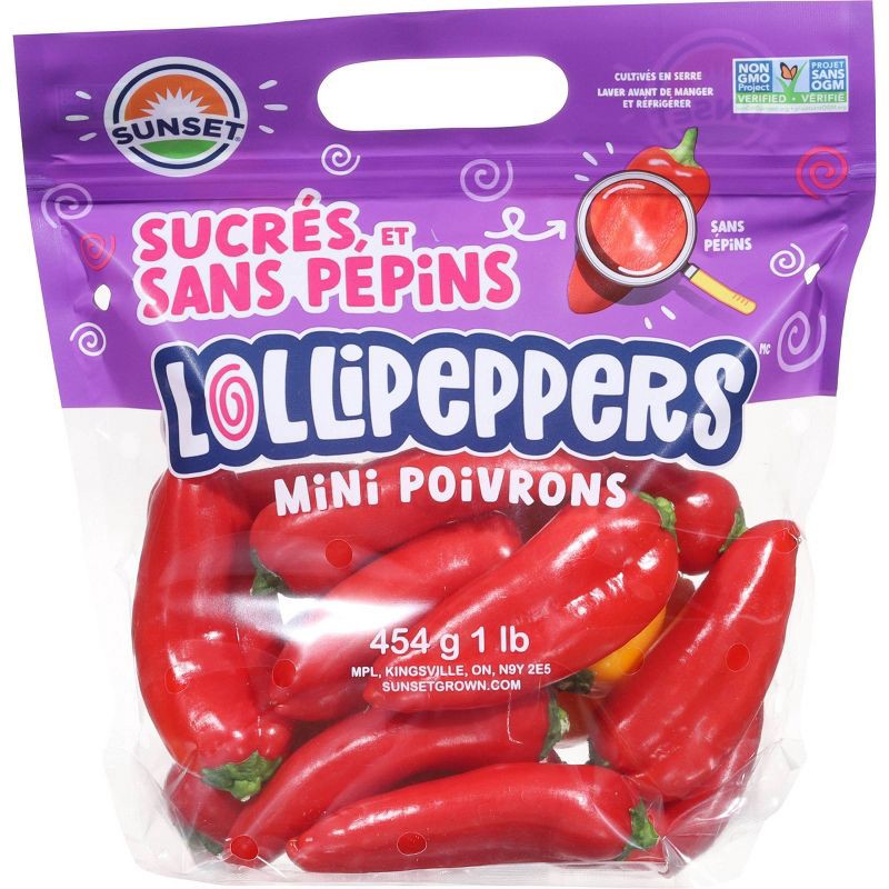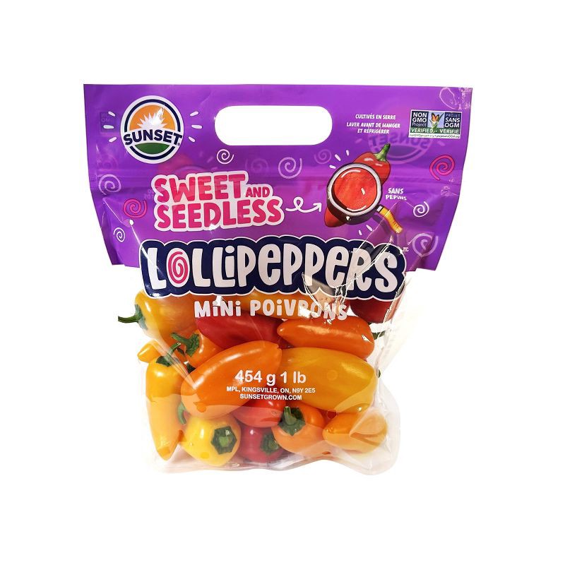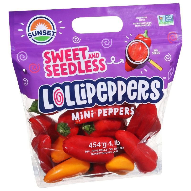 - The SUNSET LolliPeppers are bright seedless mini peppers deliver the perfect crunch and sweet flavor