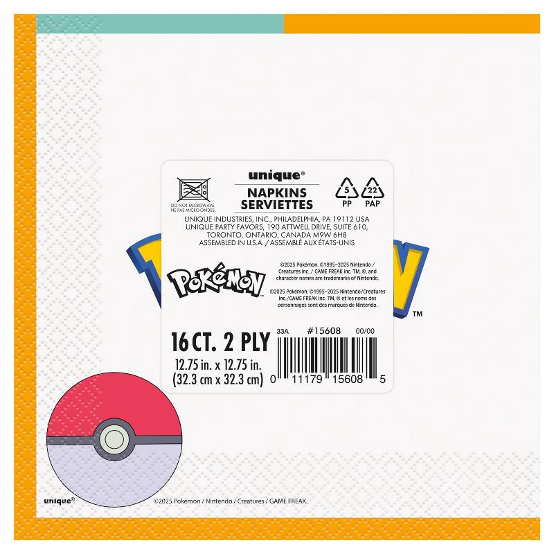 - 16 Pokémon Lunch Napkins, measure 6.5 inches