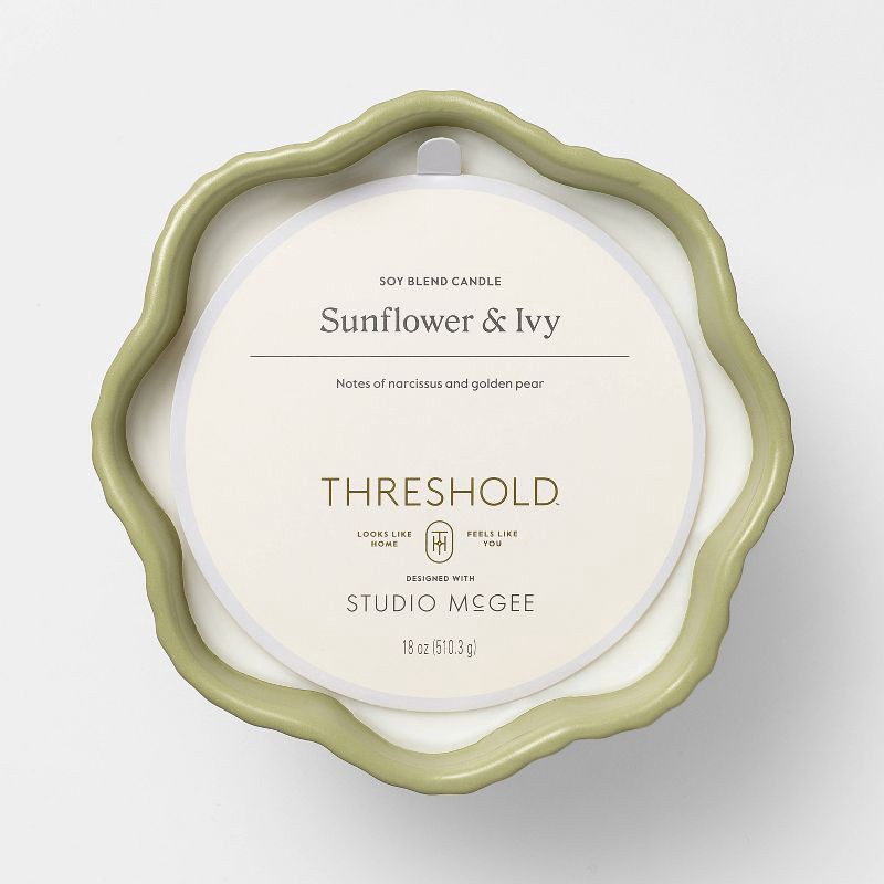Threshold designed w/Studio McGee 3 Wick Wavy Ribbed Ceramic Sunflower Ivy Jar Candle Light Green 18oz - Threshold™ designed with Studio McGee