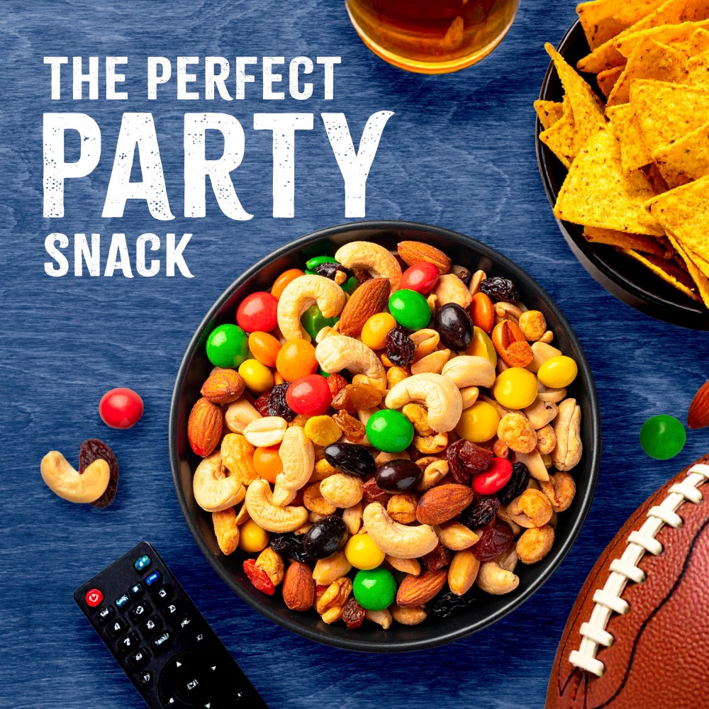 Peanuts, raisins, M & M's milk chocolate candies, almonds & cashews. Attention Trail Mix Lovers! We have the perfect mix for you. Kroger's Classic Trail Mix is a unique blend of sweet plump raisins, f…