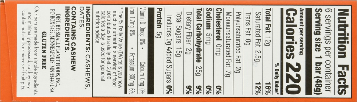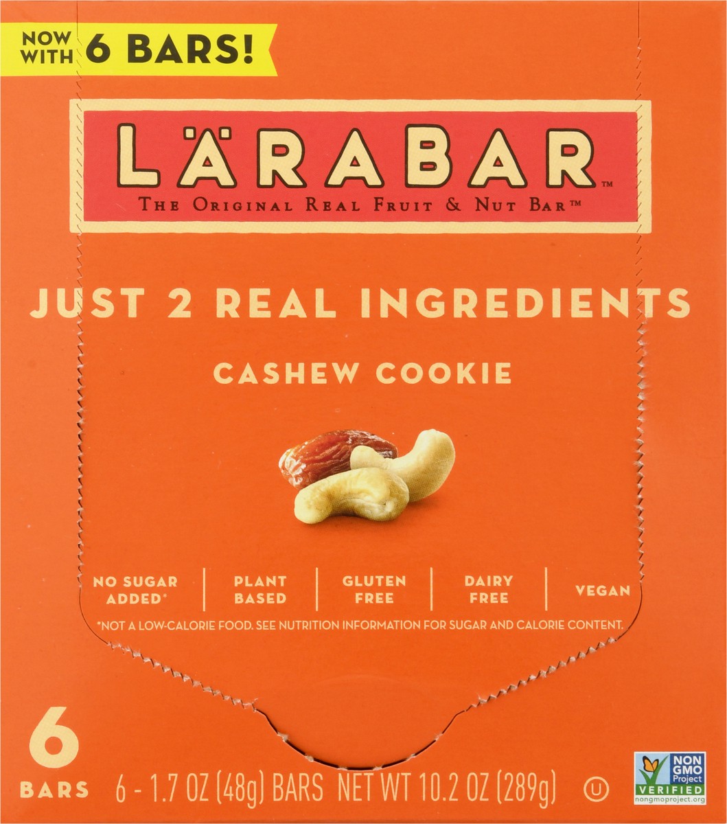 LÄRABAR Cashew Cookie, Gluten Free Vegan Fruit & Nut Bar, 1.7 oz Bars, 6 Ct