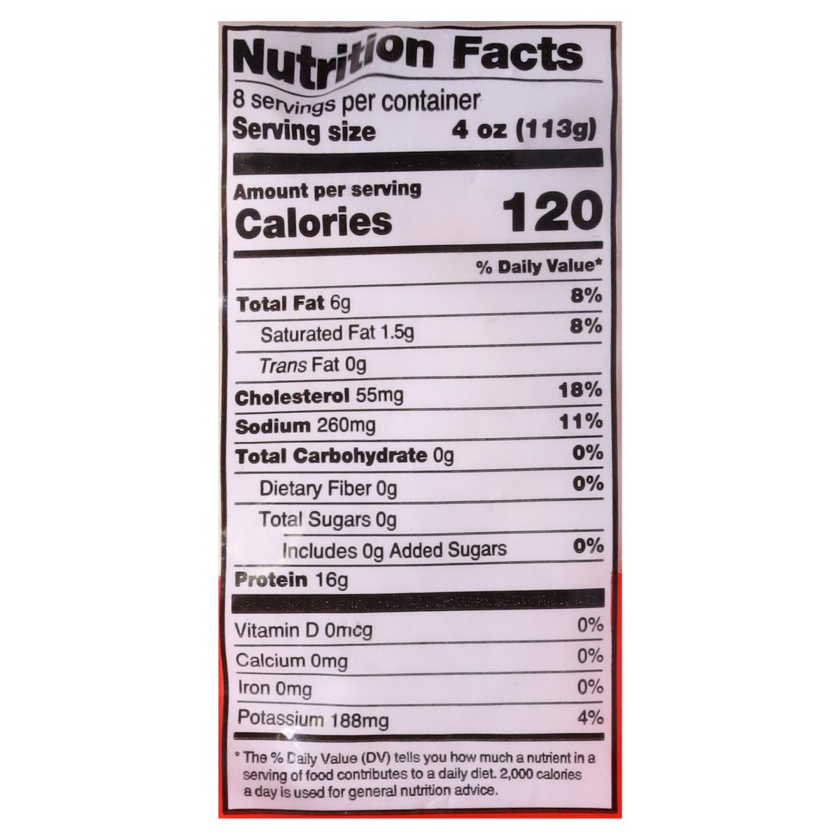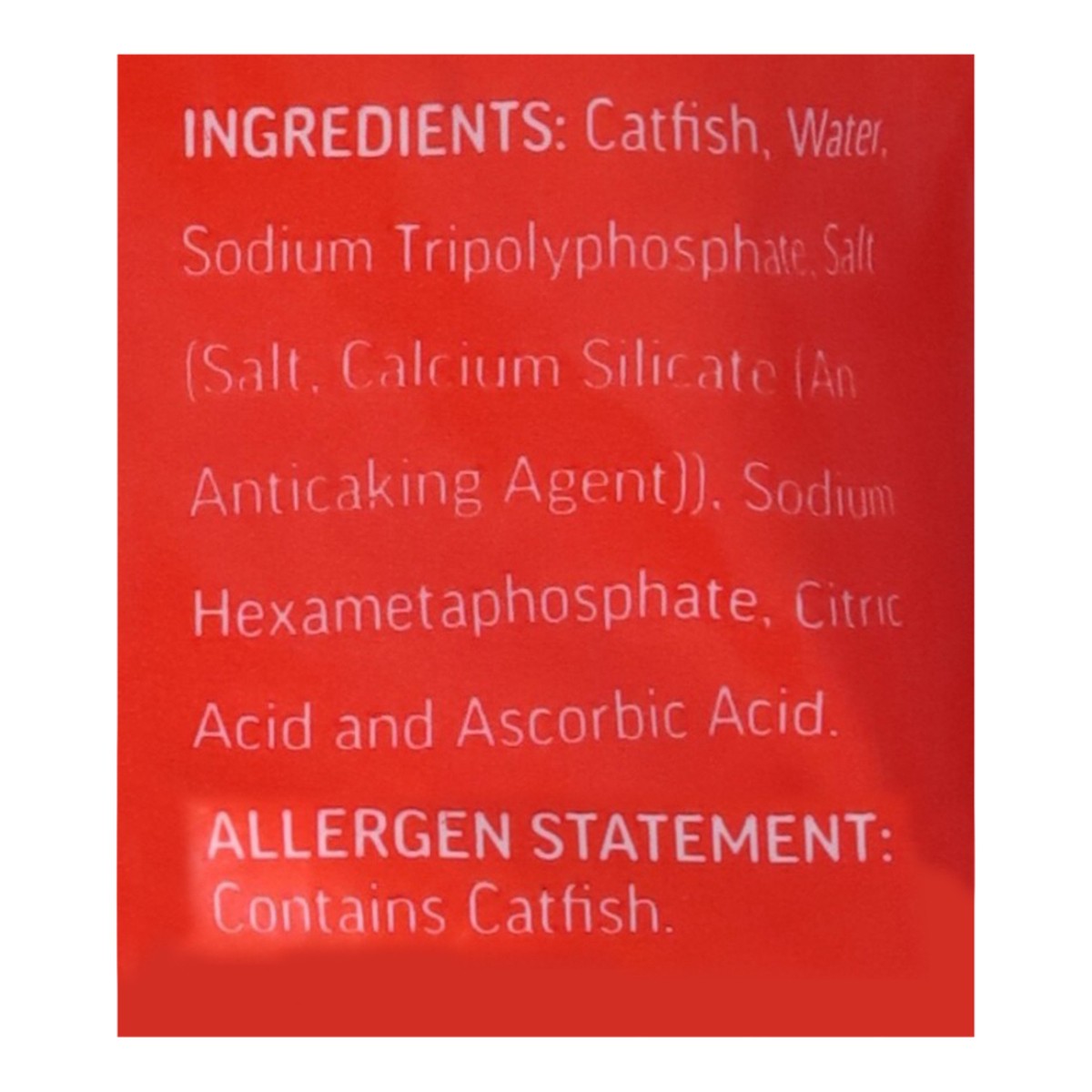 Catfish, Water, Sodium Tripolyphosphate, Salt (Salt, Calcium Silicate (an Anticaking Agent)), Sodium Hexametaphosphate, Citric Acid and Ascorbic Acid.