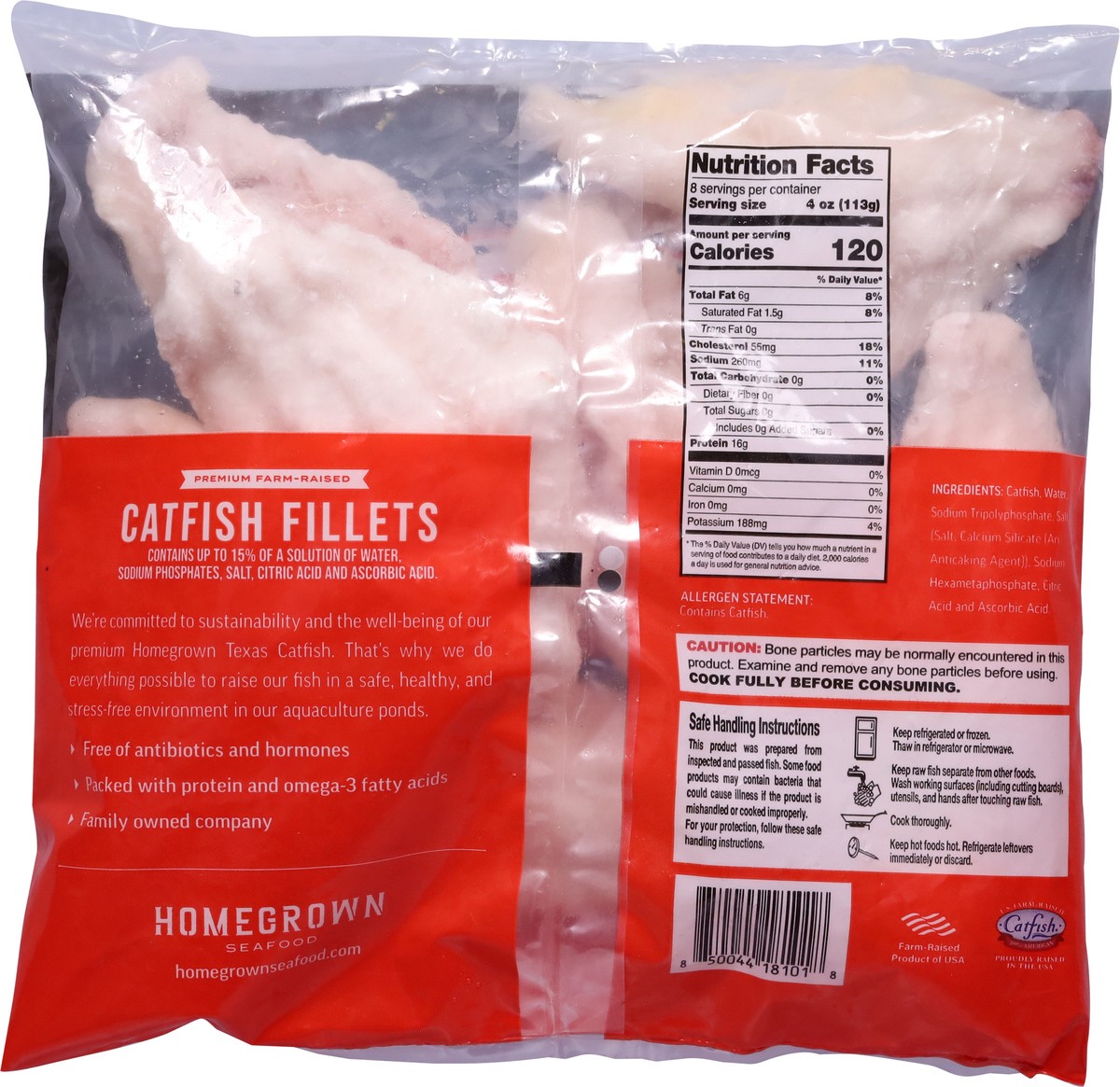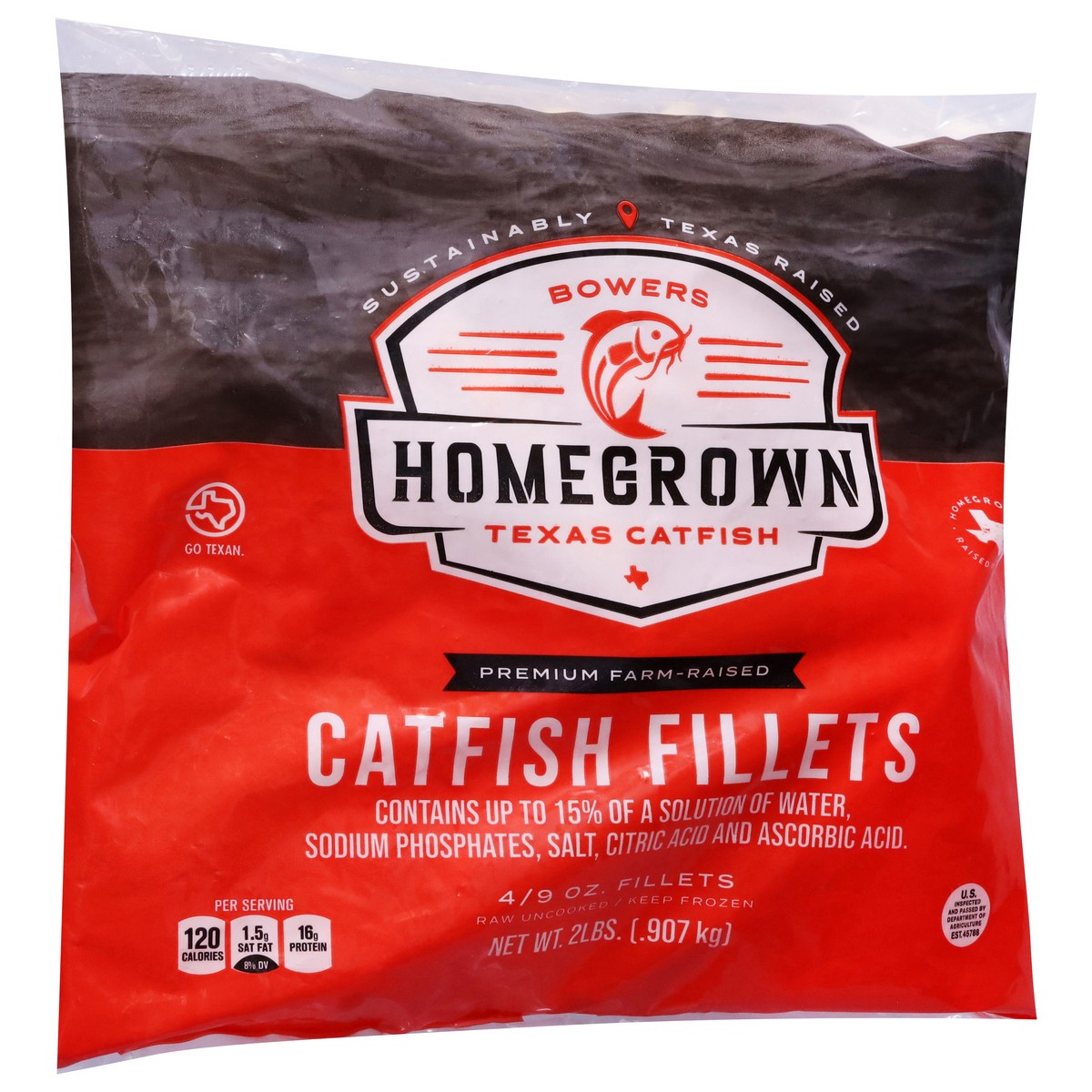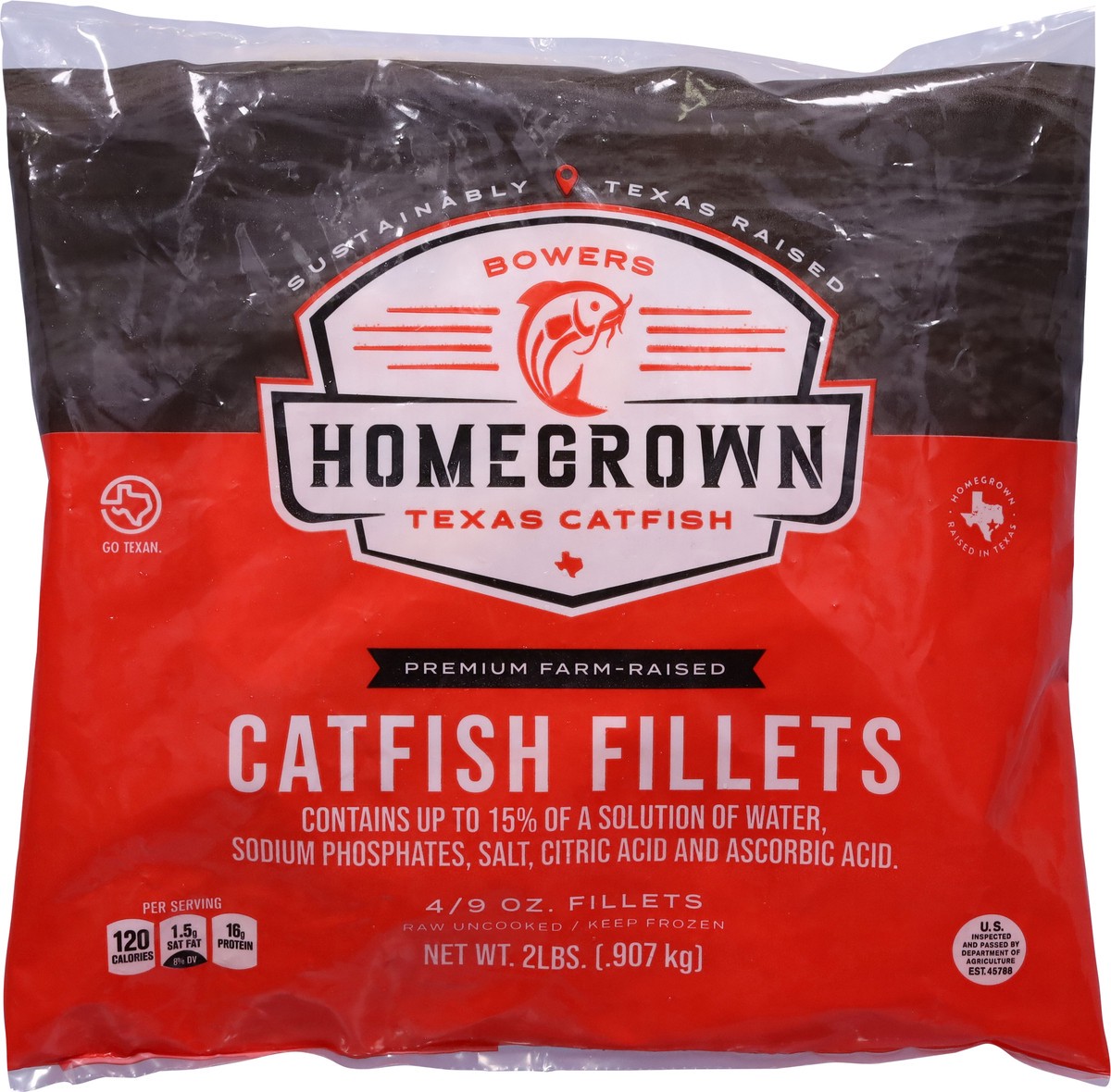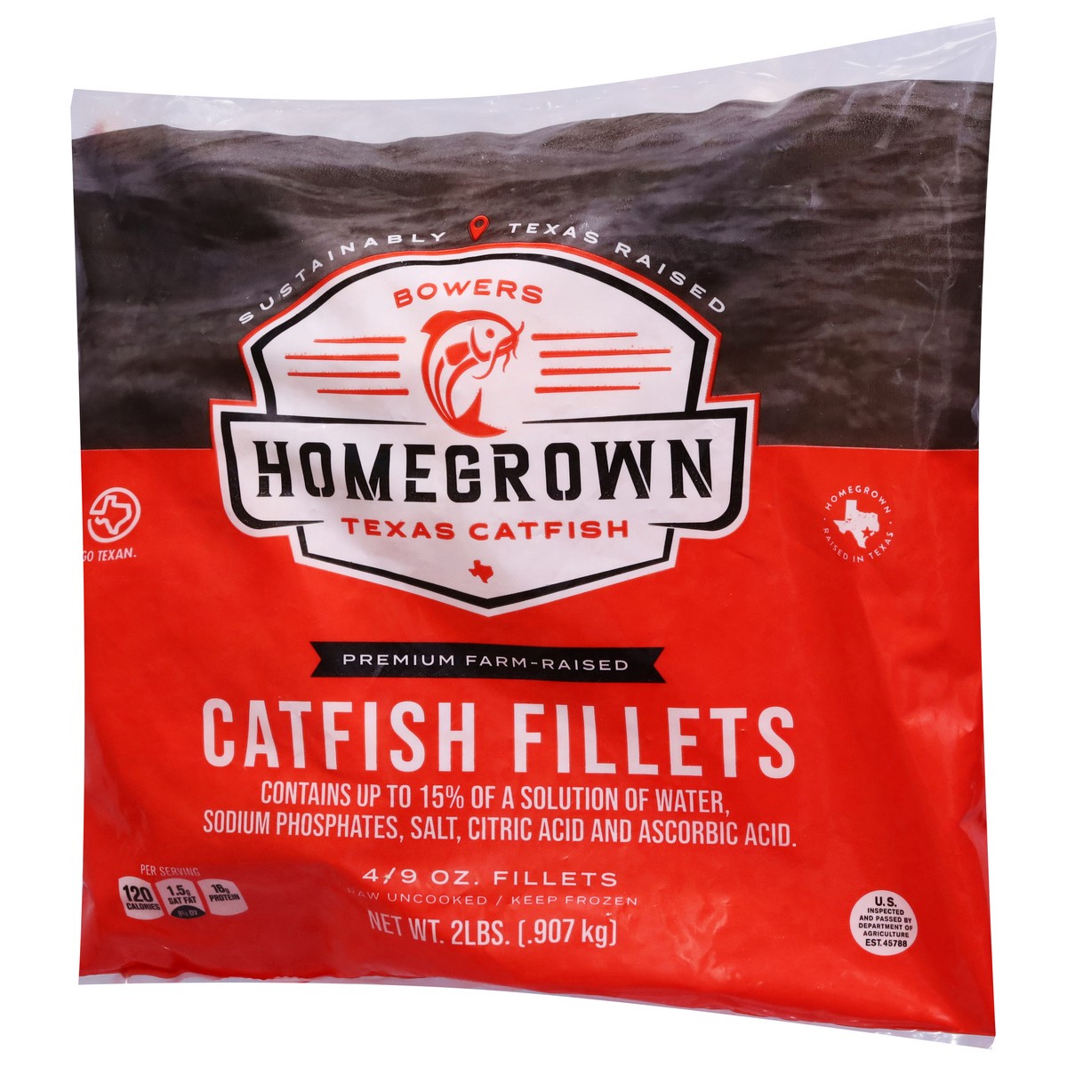 From Bowers Homegrown, these catfish fillets are farm-raised and homegrown in Texas. Bag of 4 - 9 oz fillets.