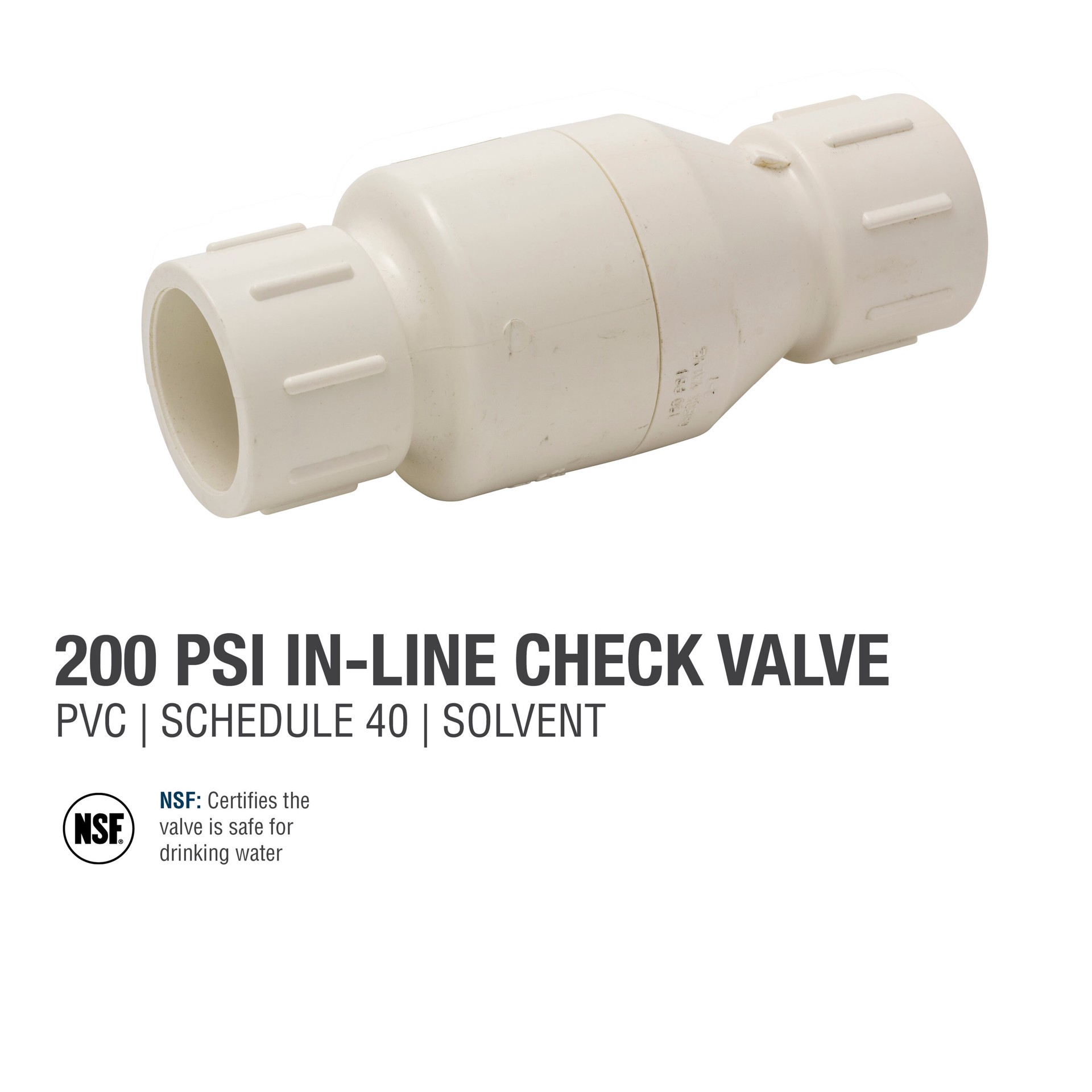 Rated for 200 PSI at 73°F. Fits both Schedule 40 and Schedule 80 PVC pipe. Self-actuated valve, meaning this valve requires no manual effort for it to work.