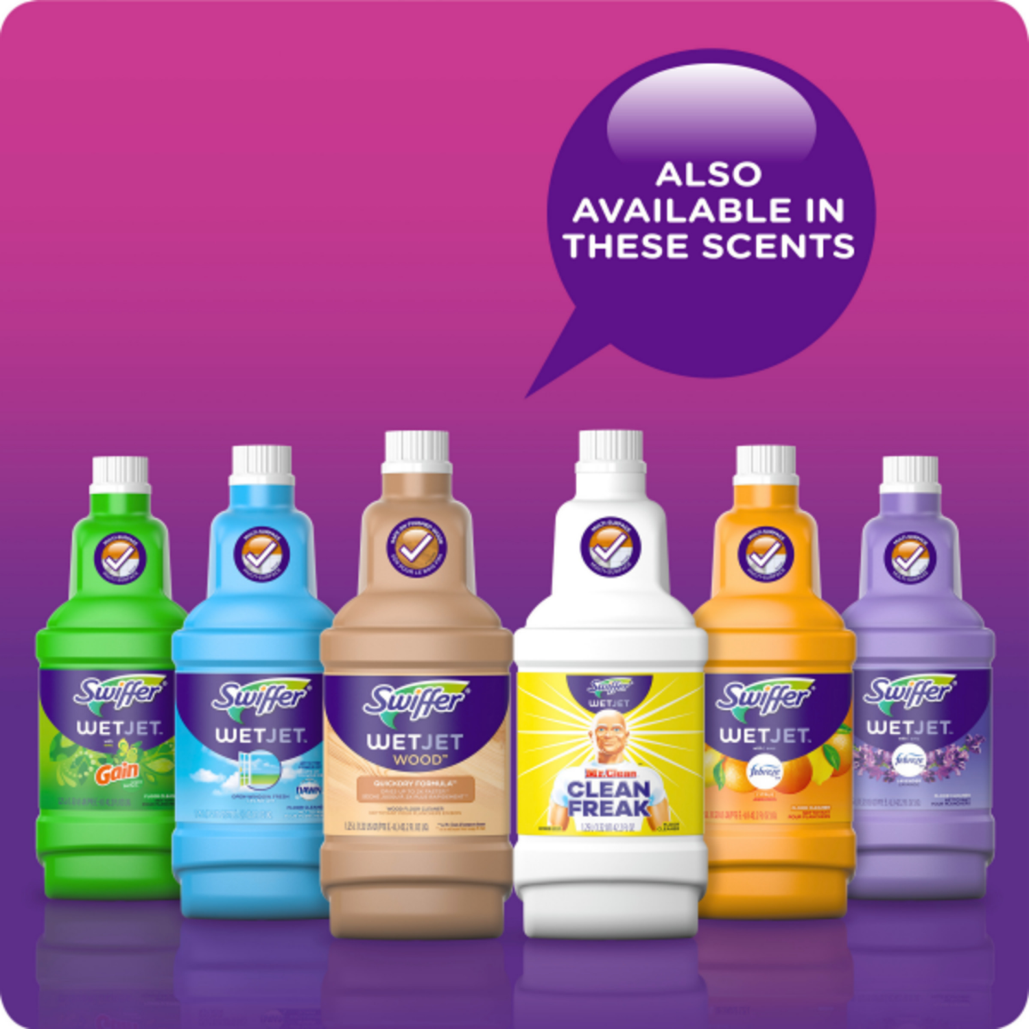 - There's the perfect Swiffer WetJet solution for any cleaning need! Scents available in: Open Window Fresh with the Power of Dawn