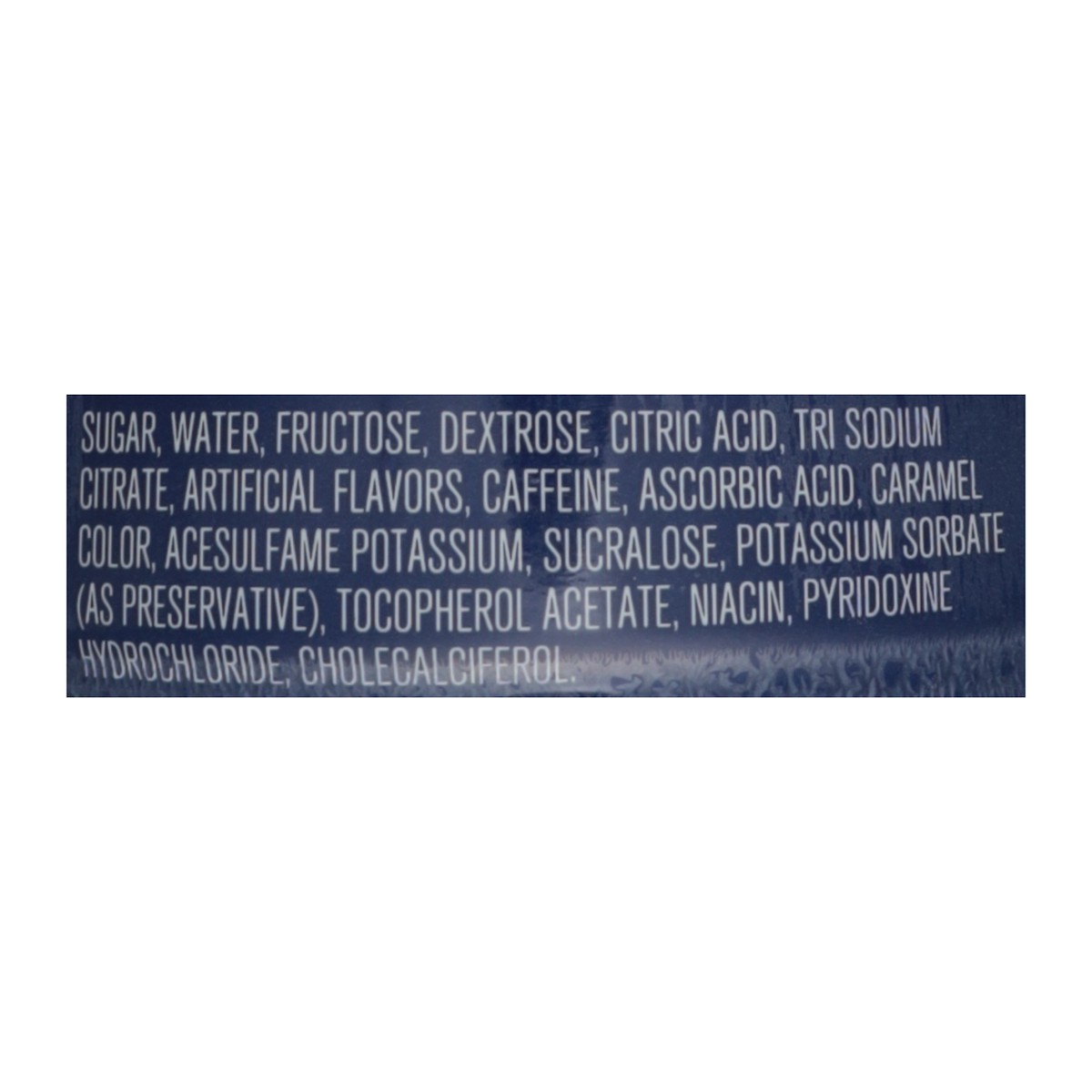 Sugar, Water, Fructose, Dextrose, Citric Acid, Tri Sodium Citrate, Artificial Flavors, Caffeine, Ascorbic Acid, Caramel Color, Acesulfame Potassium, Sucralose, Potassium Sorbate (as Preservative), Toc…