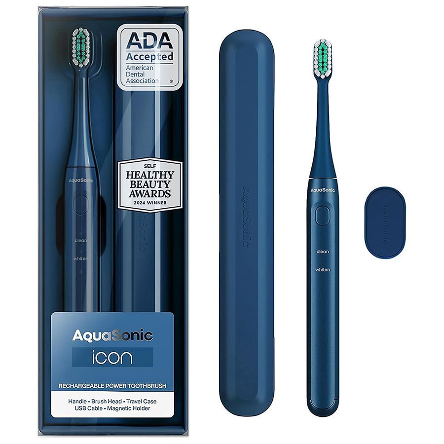 Upgrade your brushing routine with AquaSonic Icon. This rechargeable electric toothbrush produces micro-vibrations for a deeper clean. Built-in timers ensure optimal brushing time, while the lithium-i…