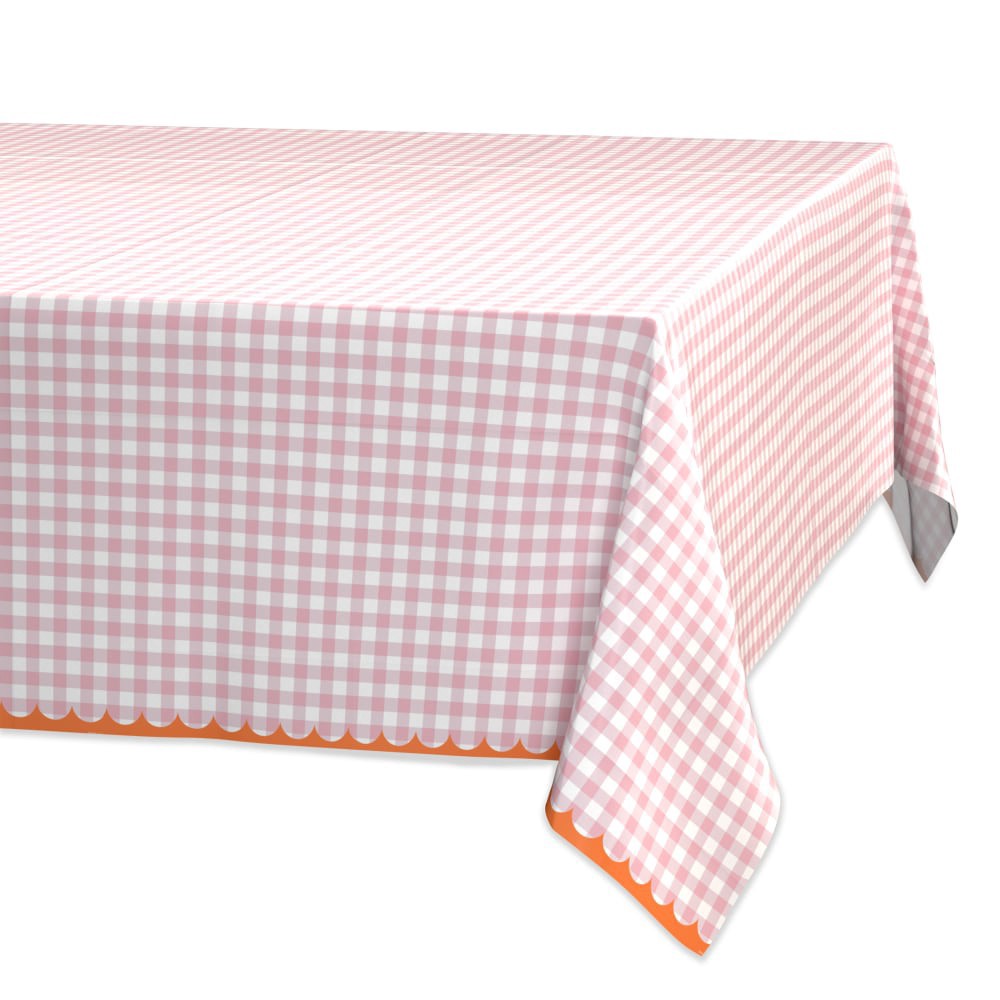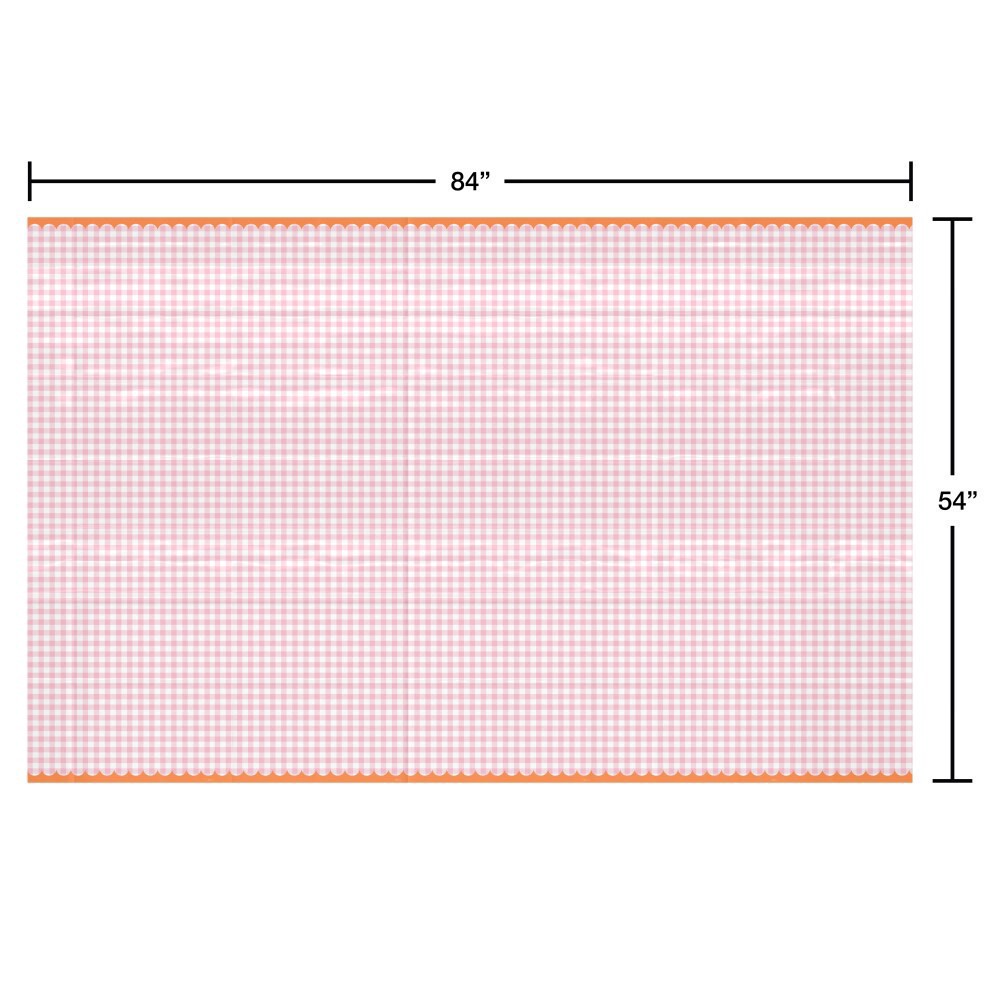 American Greetings Plastic Table Cover- Pink Gingham
