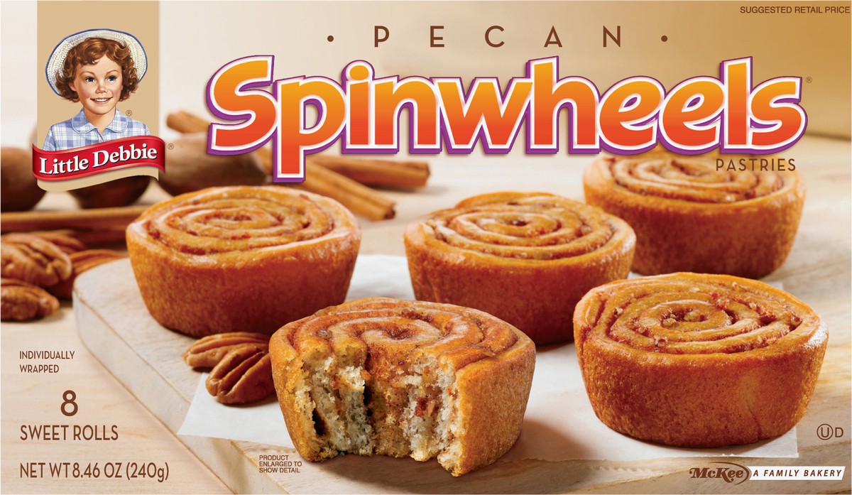 Reach for a package of comforting nostalgia with the perfect blend of sweet dough, cinnamon spice and pieces of pecans. Flavorful Little Debbie® Pecan Spinwheels are the perfect way to start any morni…