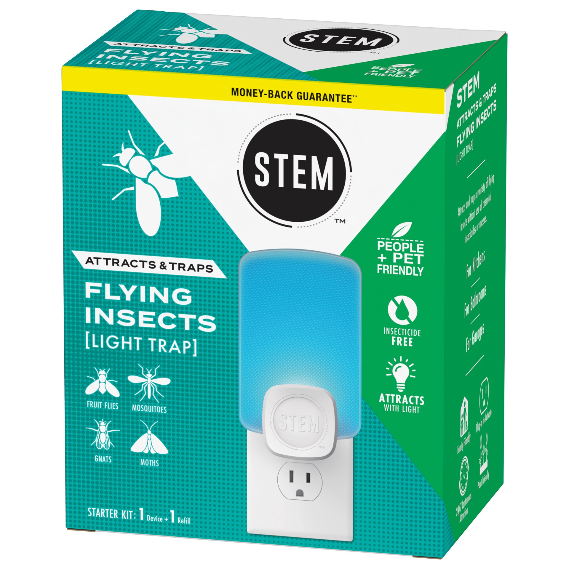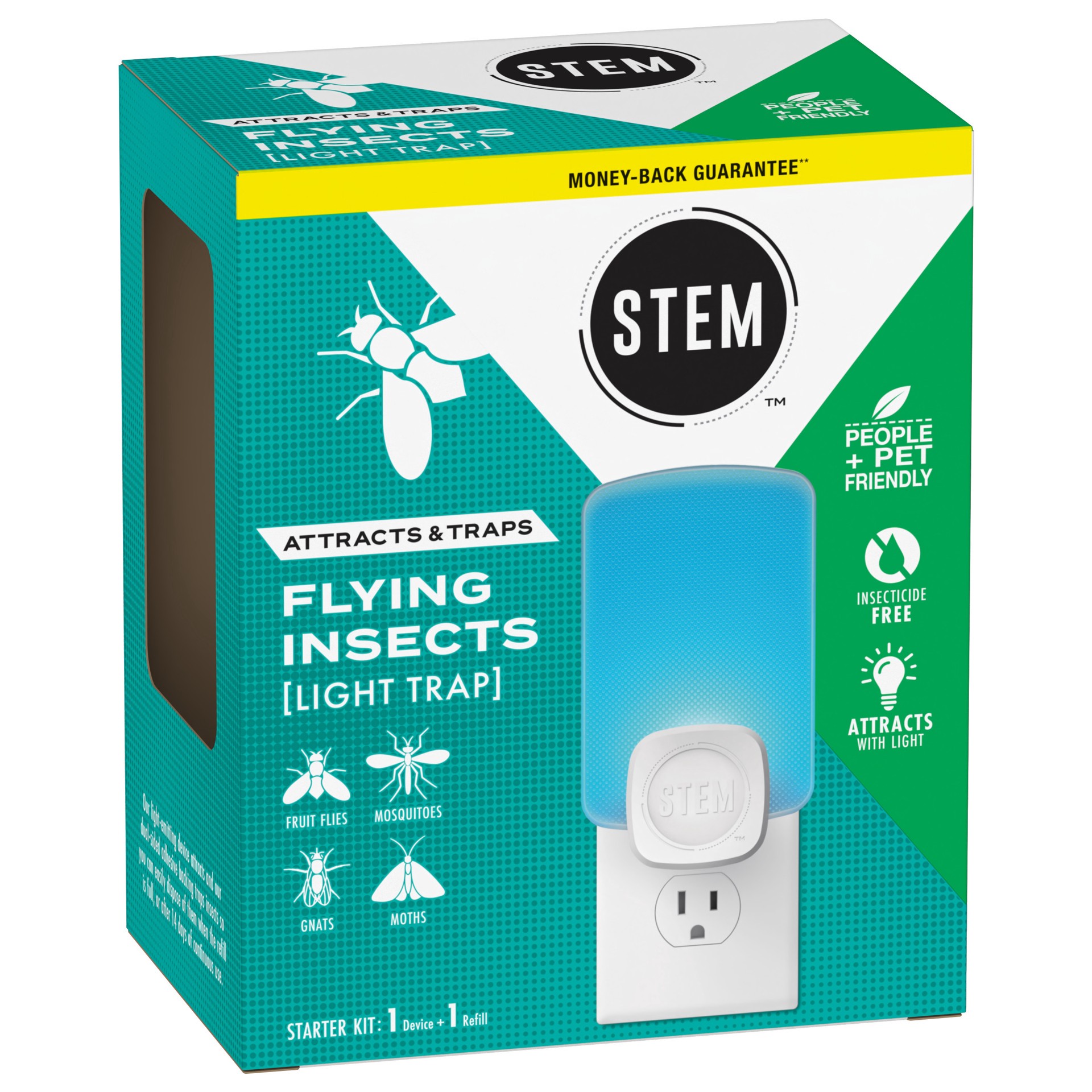 STEM Light Trap, Attracts and Traps Flying Insects, Emits Soft Blue Light, Includes Starter Kit with 1 Light Trap and 1 Cartridge