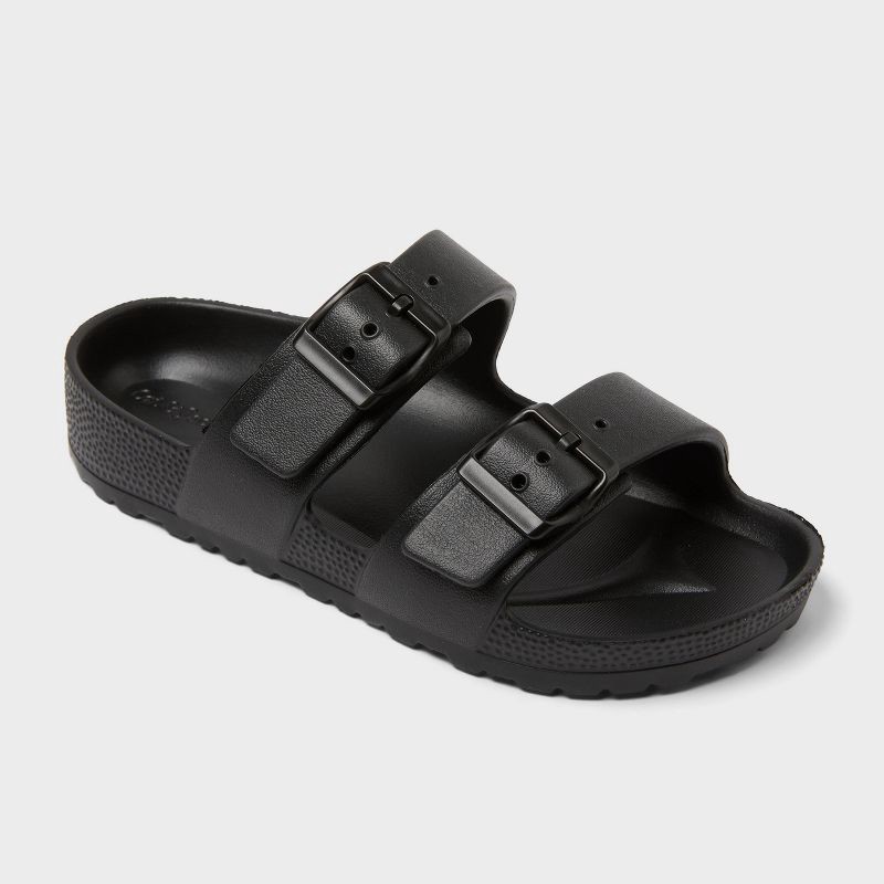 Upgrade their footwear collection with these Noa Footbed Sandals from Cat & Jack™. These sandals feature double straps with a buckle closure for an adjustable fit and boast a contoured footbed for com…