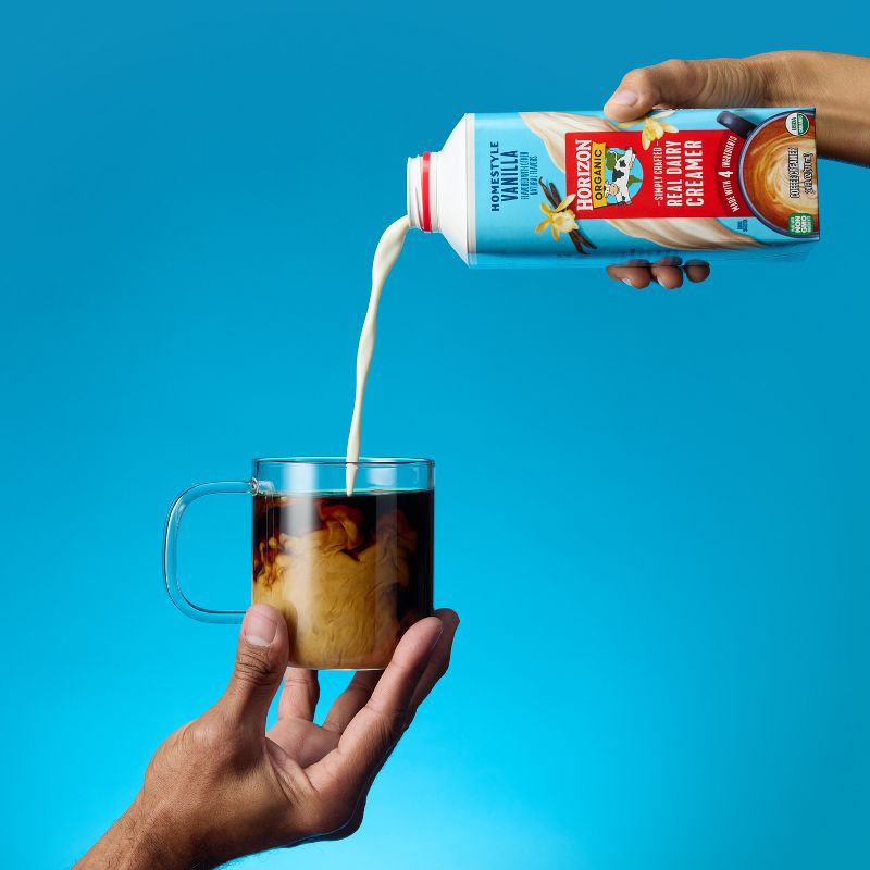 - DELICIOUSLY CREAMY: One 24 fl oz carton of Horizon Organic Real Dairy Homestyle Vanilla Coffee Creamer adds flavor to your coffee beverages