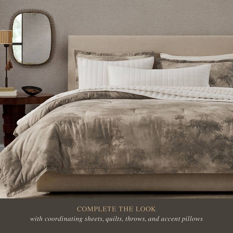 - Printed watercolor design featuring a subtle forest toile scene