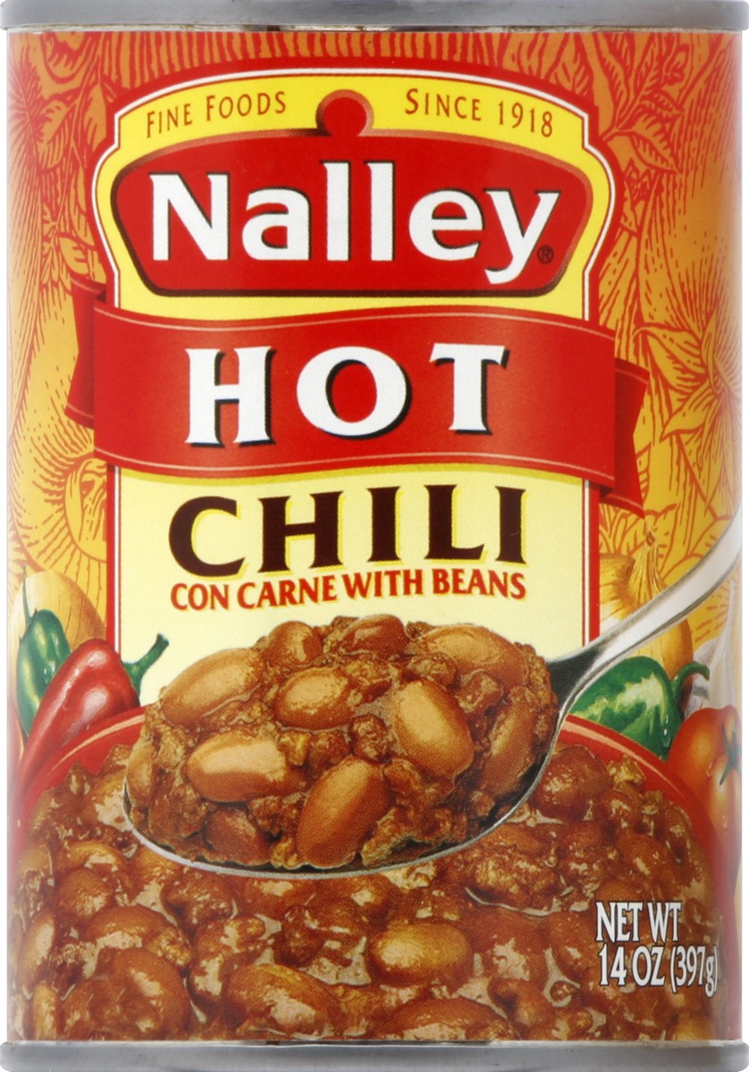 - Contains one 14-ounce can of Nalley Hot Chili Con Carne With Beans