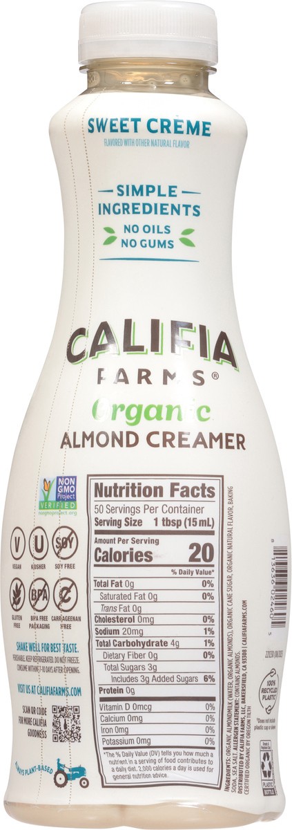 Califia Farms Dairy Free Organic Sweet Creme Almond Creamer 25.4 fl oz