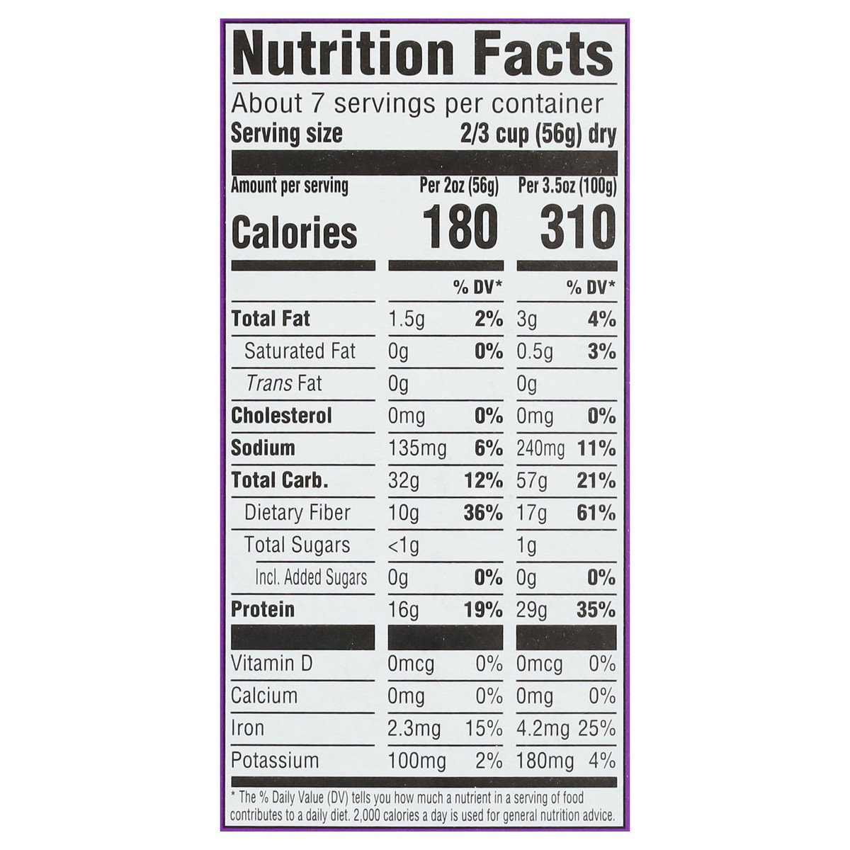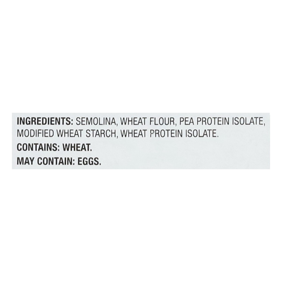 Semolina, Wheat Flour, Pea Protein Isolate, Modified Wheat Starch, Wheat Protein Isolate.