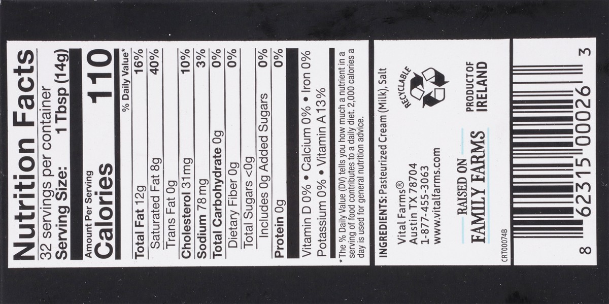 Vital Farms Sea Salted Pasture Raised Butter 16.00oz