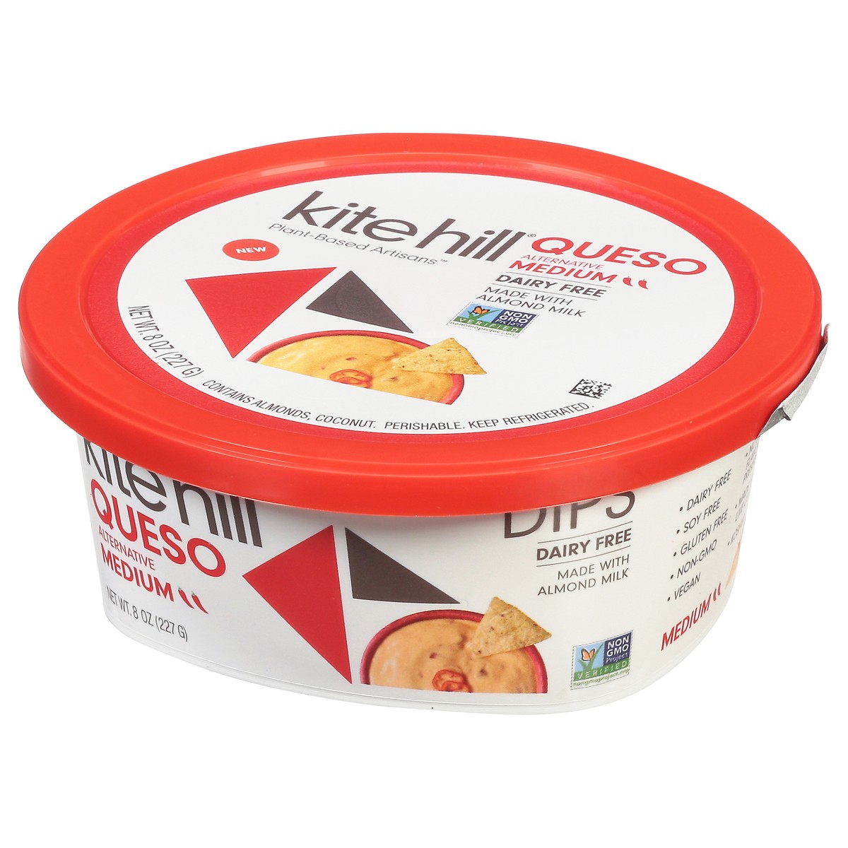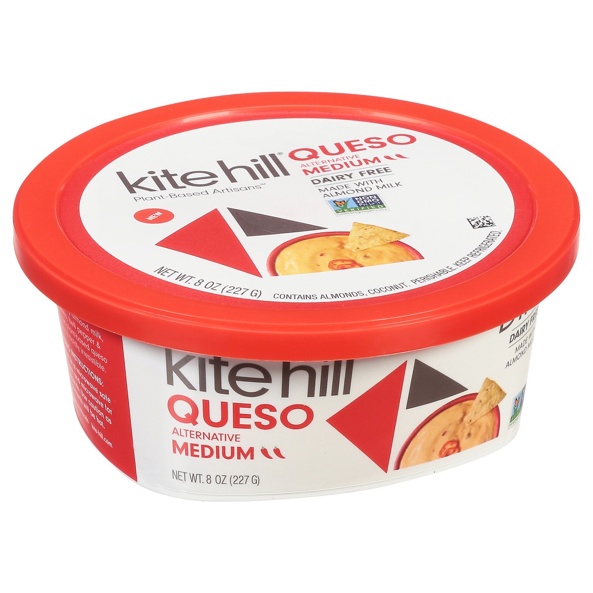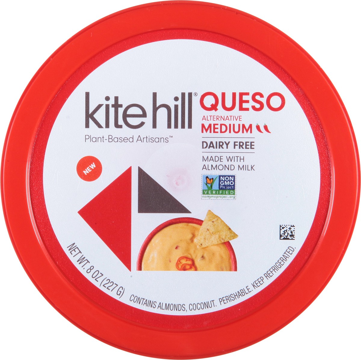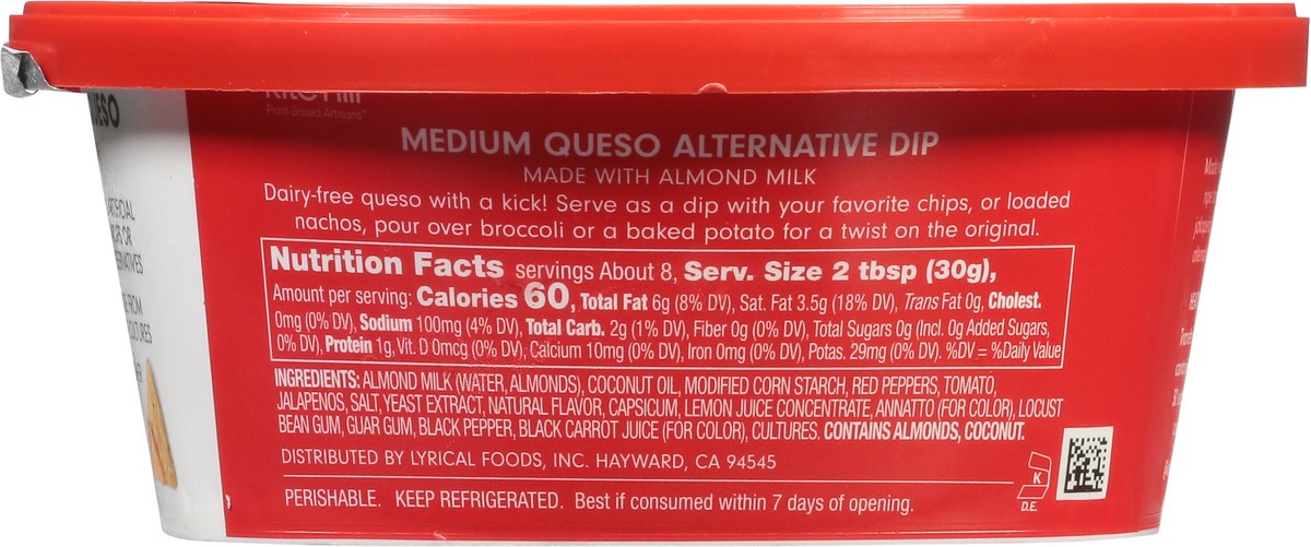 Almond Milk (Water, Almonds), Coconut Oil, Modified Corn Starch, Red Peppers, Tomato Jalapenos, Salt, Yeast Extract Natural Flavor, Capsicum, Lemon Juice Concentrate, Annatto (for Color), Locust Bean …