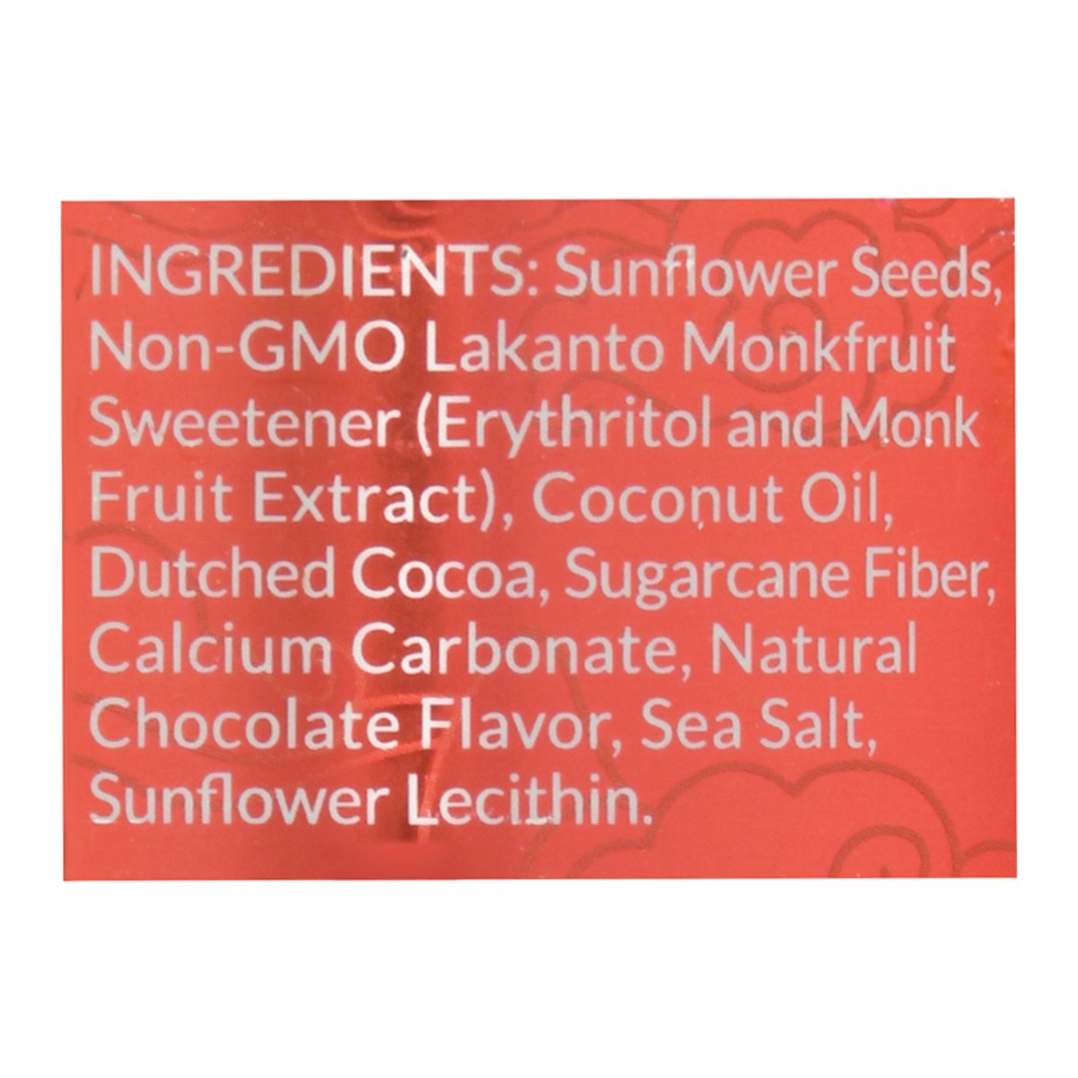 Sunflower Seeds, Non-GMO Lakanto Monkfruit Sweetener (Erythritol and Monk Fruit Extract), Coconut Oil, Dutched Cocoa, Sugarcane Fiber, Calcium Carbonate, Natural Chocolate Flavor, Sea Salt, Sunflower …