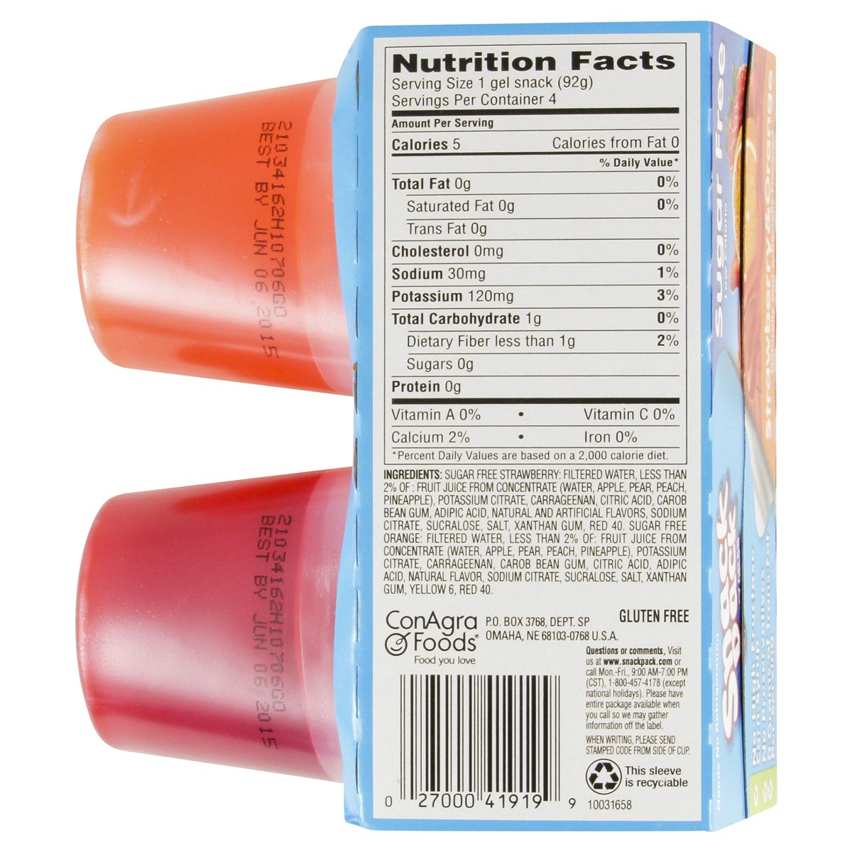 Give your child a tasty treat they will love with Snack Pack SugarFree Strawberry and Orange Juicy Gels. Classic fruity flavors team up for only 5 calories per serving in this sugarfree strawberry and…