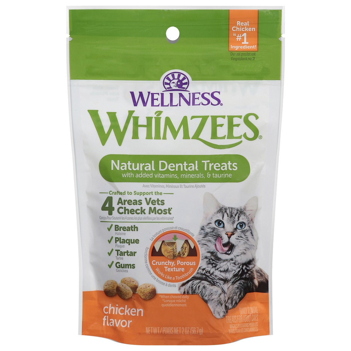 Whimzees Wellness Cat Dental Treats, Natural Chews, Chicken Flavor, 2 oz Bag