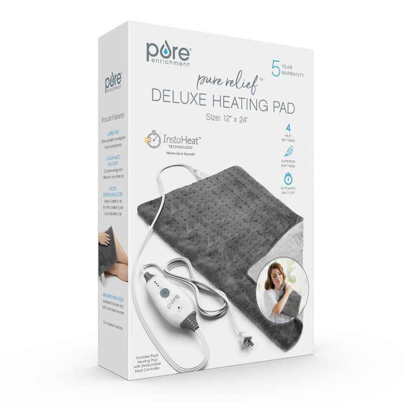 - WHAT YOU GET: Electric heating pad with controller and Pure Enrichment's guaranteed 5-Year Manufacturer's Warranty. Our customer support team provides daily quality service and peace of mind to millions worldwide all from a brand you can trust.