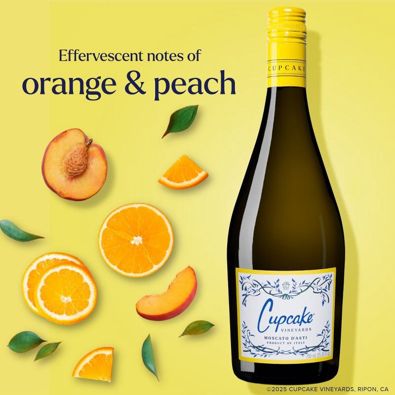 - Cupcake Vineyards Moscato d'Asti sparkling wine is vibrant with delightfully sweet notes of peach, orange blossom, and elderflower.