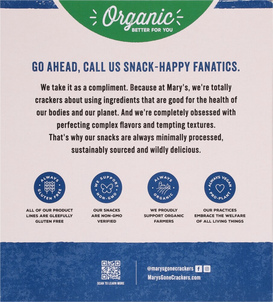 - Ingredients: Made with simple, clean, and organic ingredients, Mary’s Gone Crackers Super Seed Crackers offer a wholesome snack option