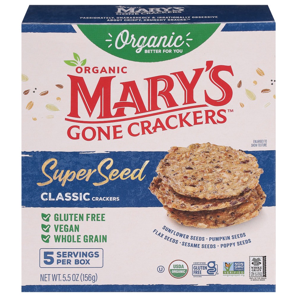 - Nutrients: 100% whole grain, Mary''s Gone Crackers Super Seed Classic Crackers contain 18g of whole grains and 5g of protein per serving.