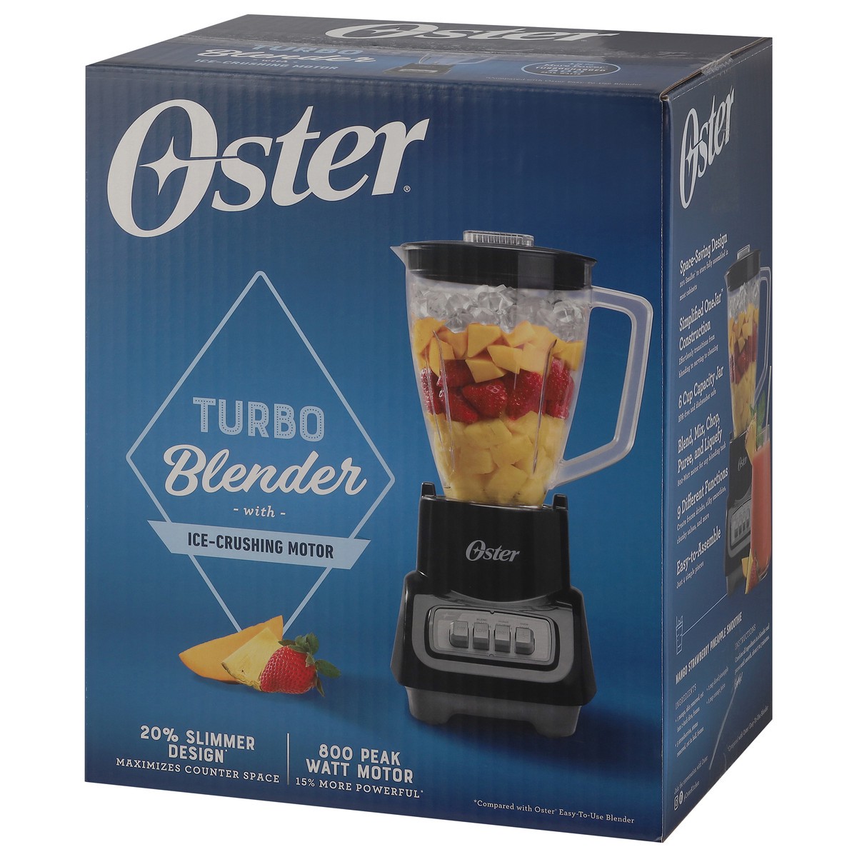 Looking for a powerful meal prep blender? This Oster® Turbo Blender with ice-crushing motor features a space-saving design and turbocharged 800 peak-watt motor to deliver 15% more power* to effortless…