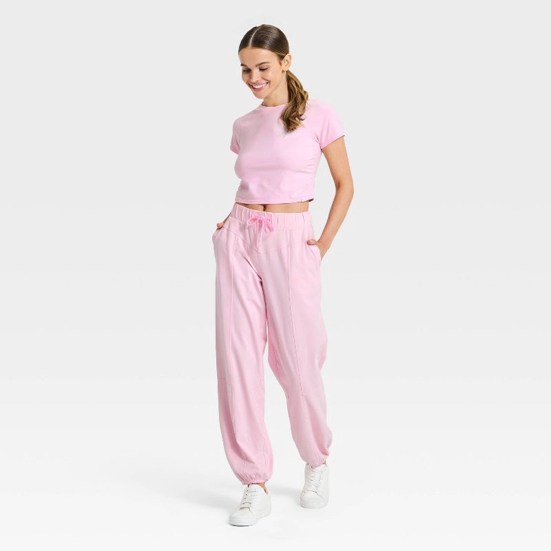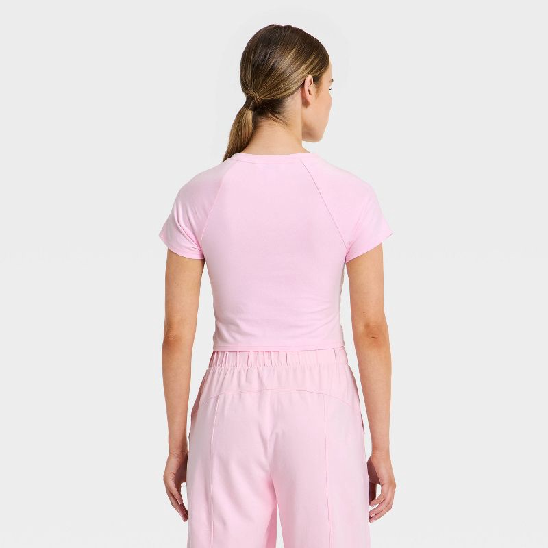Women's Washed Jersey Cropped Short Sleeve Top - JoyLab™ Light Pink L