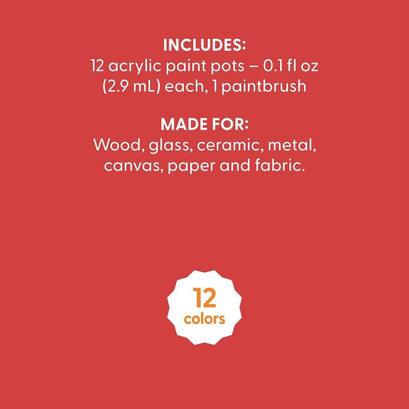 - 12ct acrylic paint set includes a paintbrush to get you started