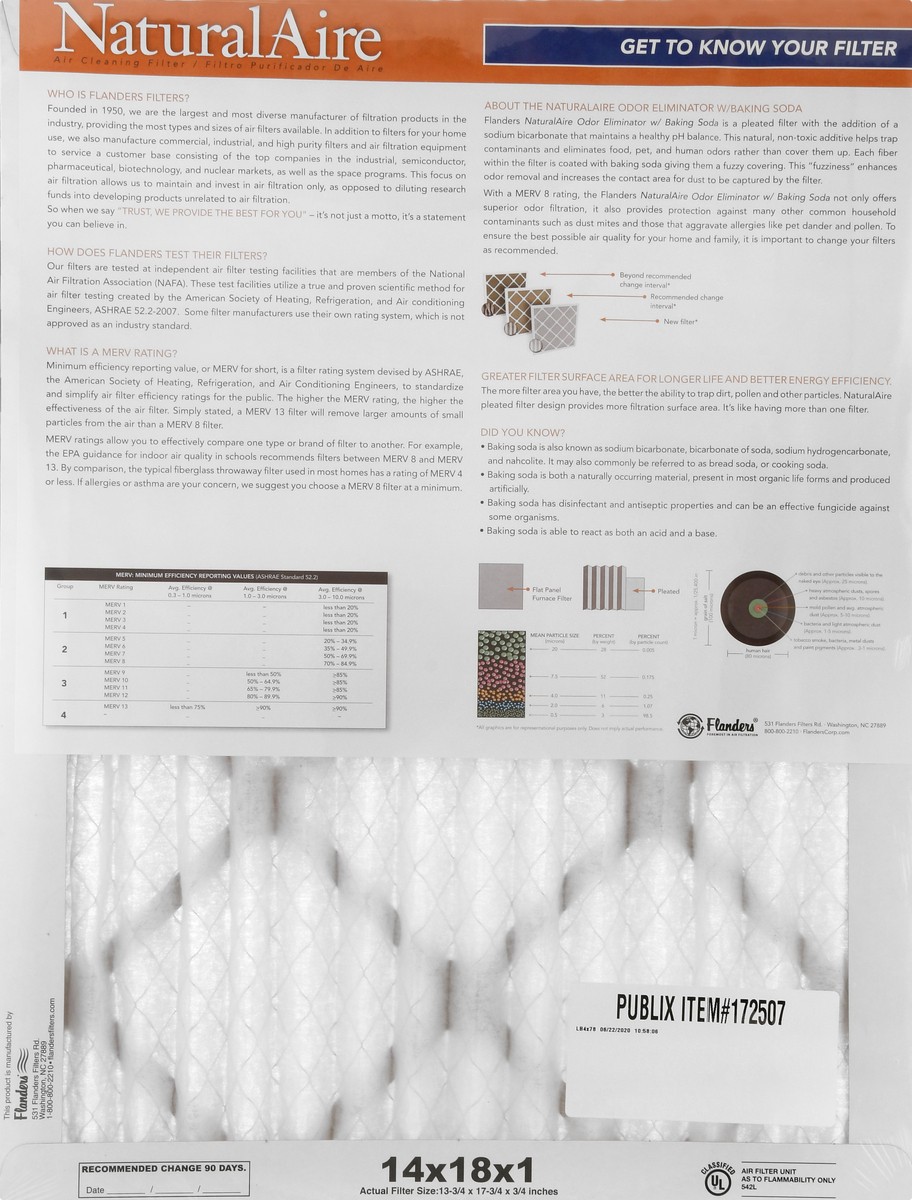 NaturalAire 14 x 18 x 1 Odor Eliminator with Baking Soda Air Cleaning Filter - 1 ea