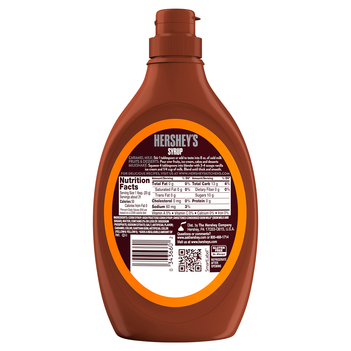 Since 1894. Natural and artificial flavor. 50 calories per 1 tbsp. Fat free. For delicious recipes, visit us at www.Hersheyskitchens.com. Questions or comments? www.askhershey.com or 800-468-1714. Vis…