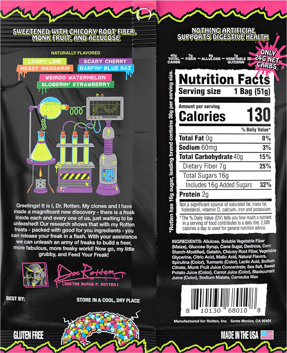 Developed in our laboratory by the infamous Dr. Rotten, our candy is made with 60% less sugar so they won't turn your guts into goo. Did we mention these little grubs are freakishly delicious? Go on, …
