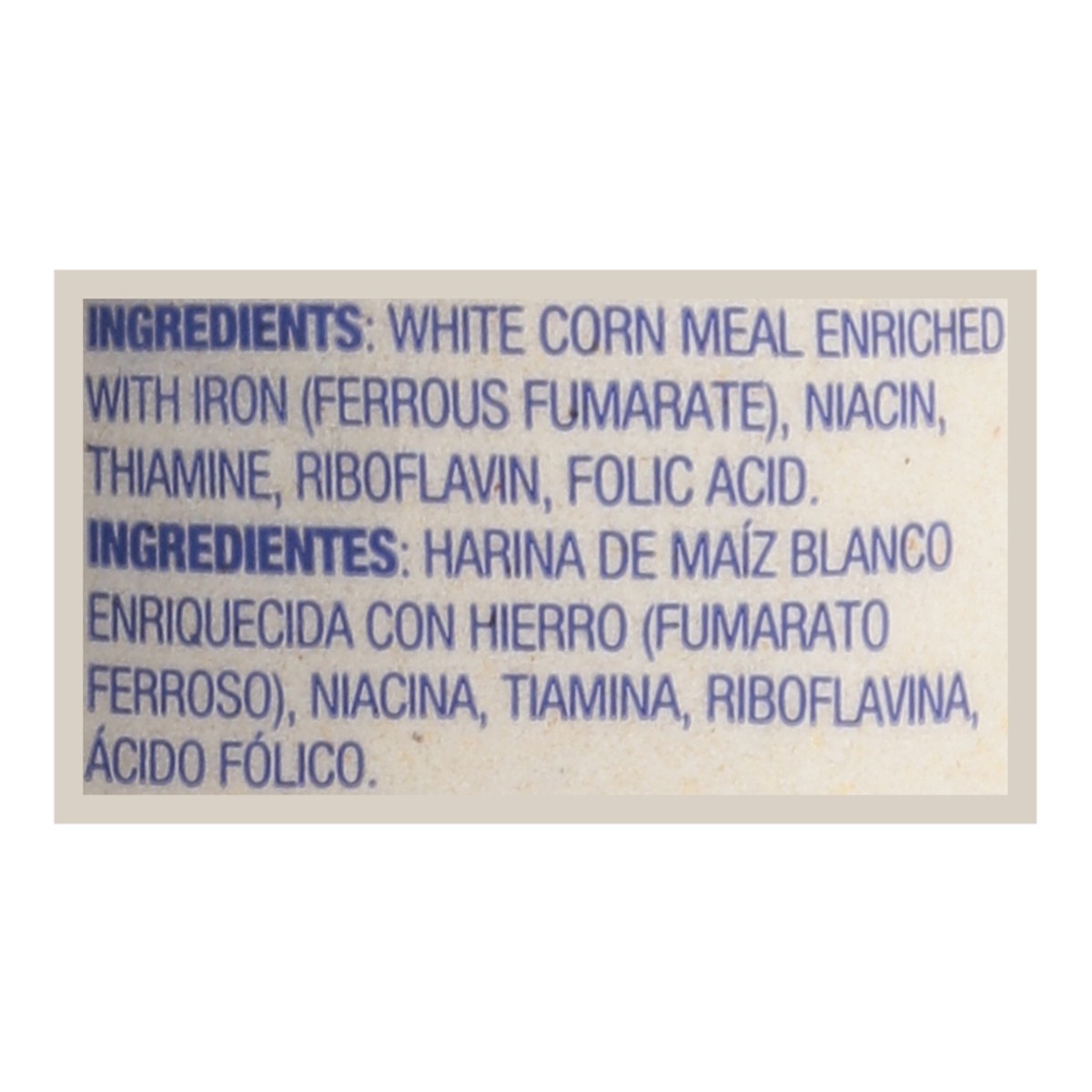 White Corn Meal Enriched with Iron (Ferrous Fumarate), Niacin, Thiamine, Riboflavin, Folic Acid.