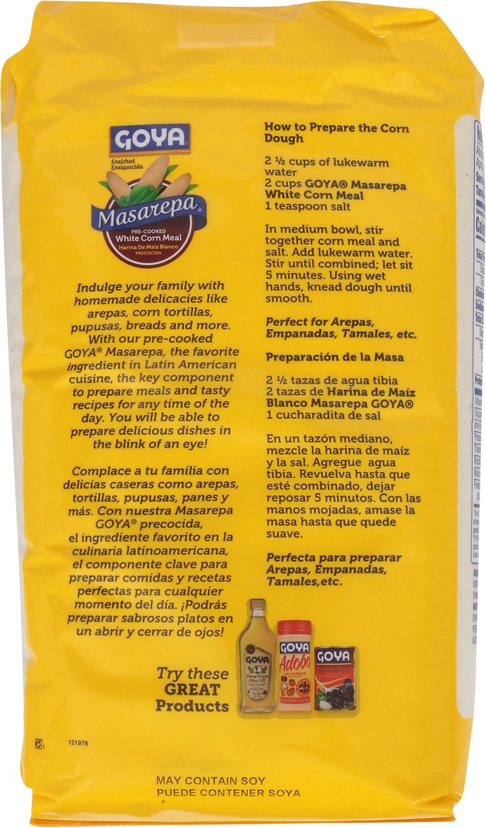 A favorite ingredient in Venezuelan and Colombian cuisine, GOYA® Masarepa – Pre-Cooked White Corn Meal is a finely ground corn flour, the key ingredient in a variety of dishes like arepas, tortas, bre…