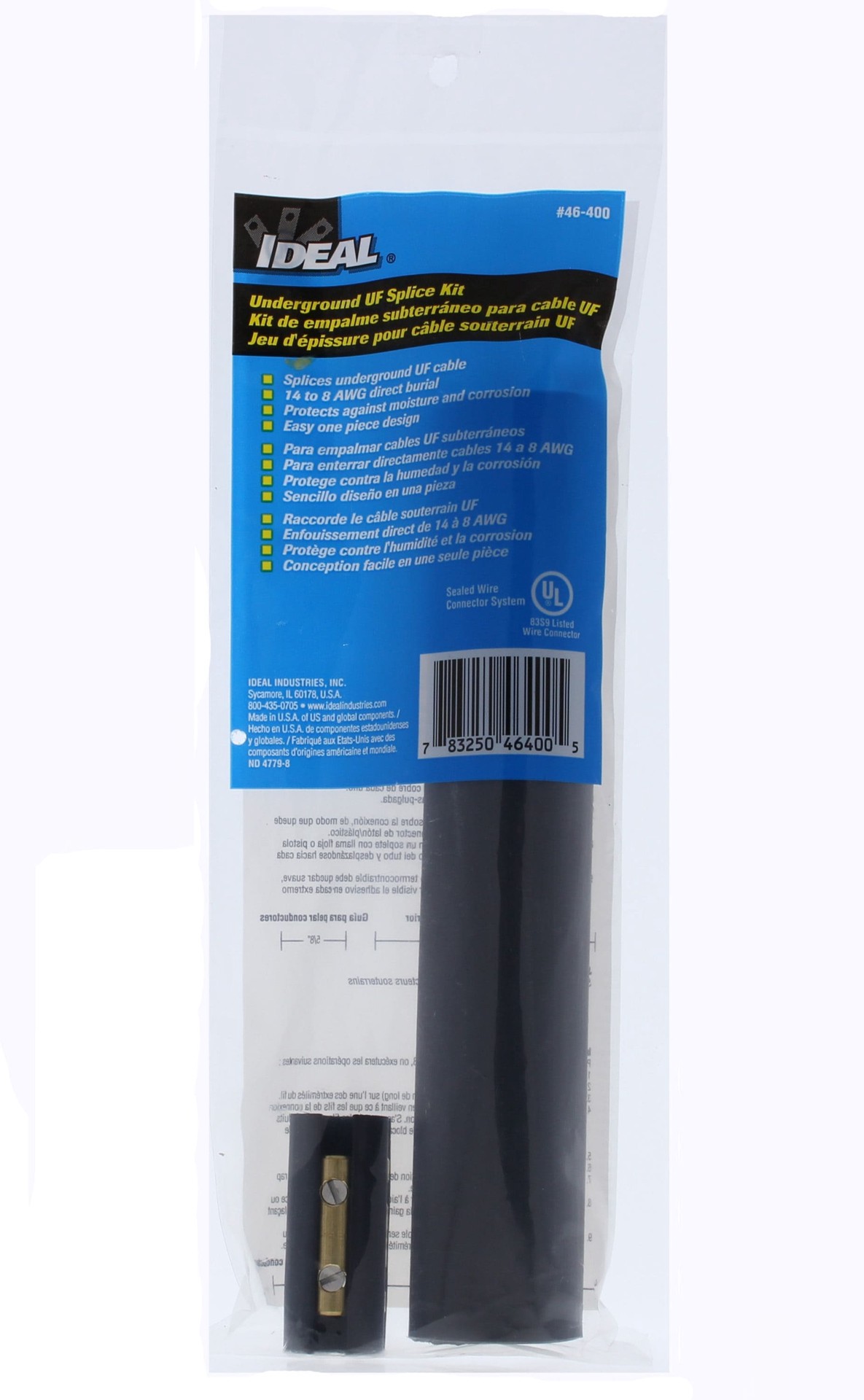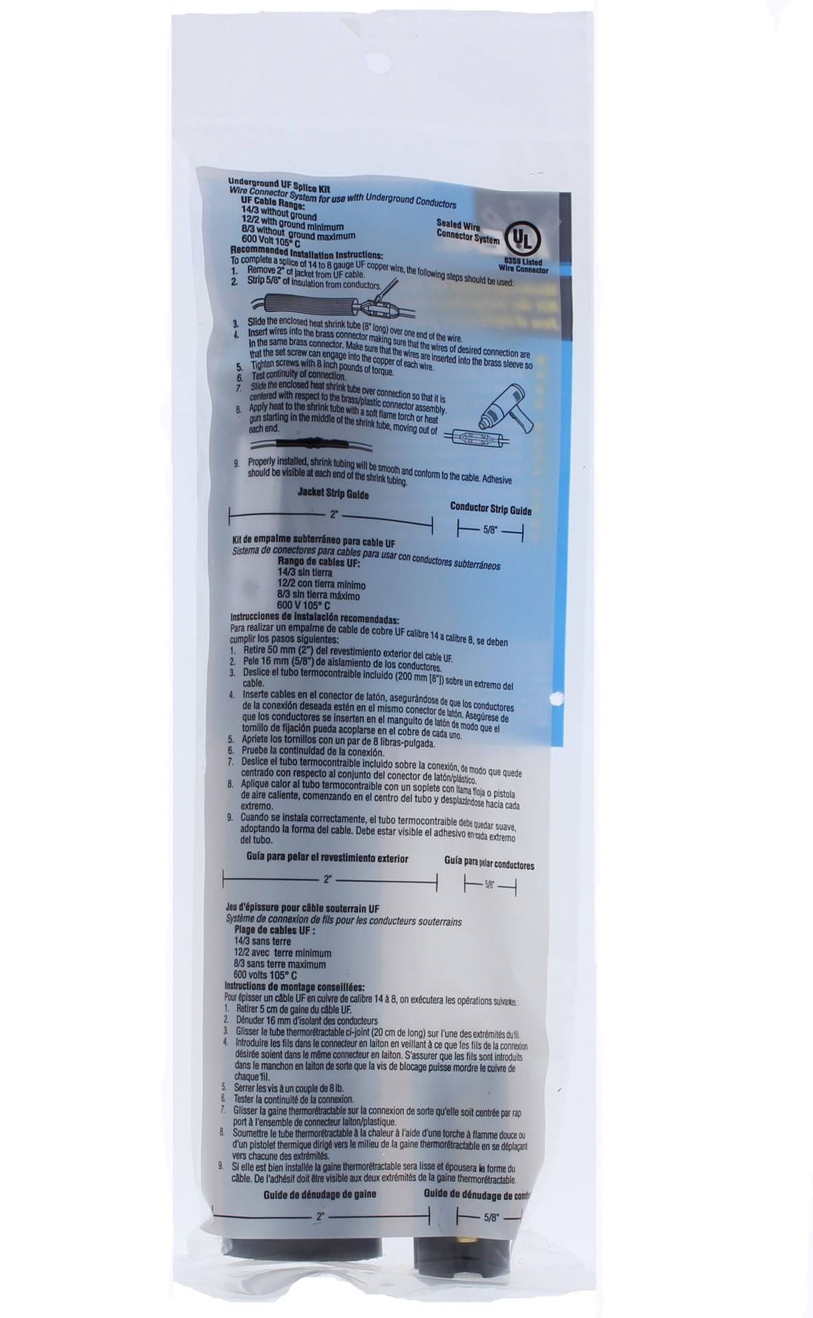 Direct burial rated. 600V maximum, 105 C rating. Meets the requirements of the 2002 NEC Code 110-14(b) and UL486D. Black. Can be used on 14/3 with and without ground thru 8/3 without ground, UF cable …