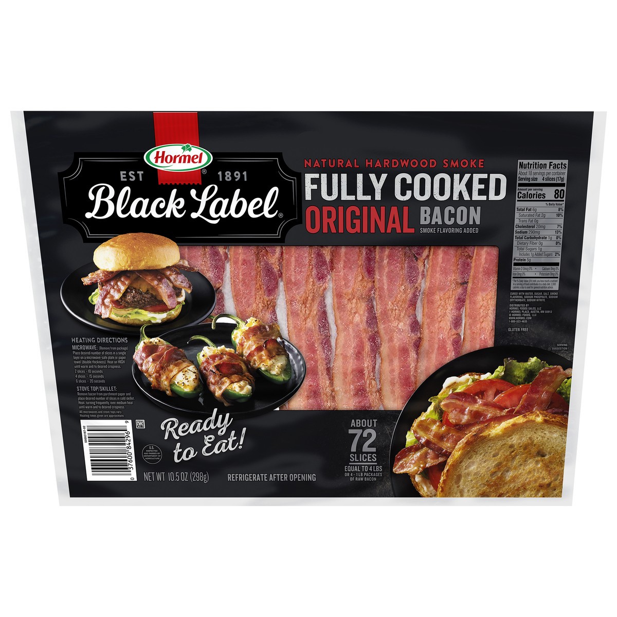 Est 1891. Natural hardwood smoke. Smoke flavoring added. Ready to eat! About 72 slices. Equal to 4 lbs or 4 - 1 lb packages of raw bacon.