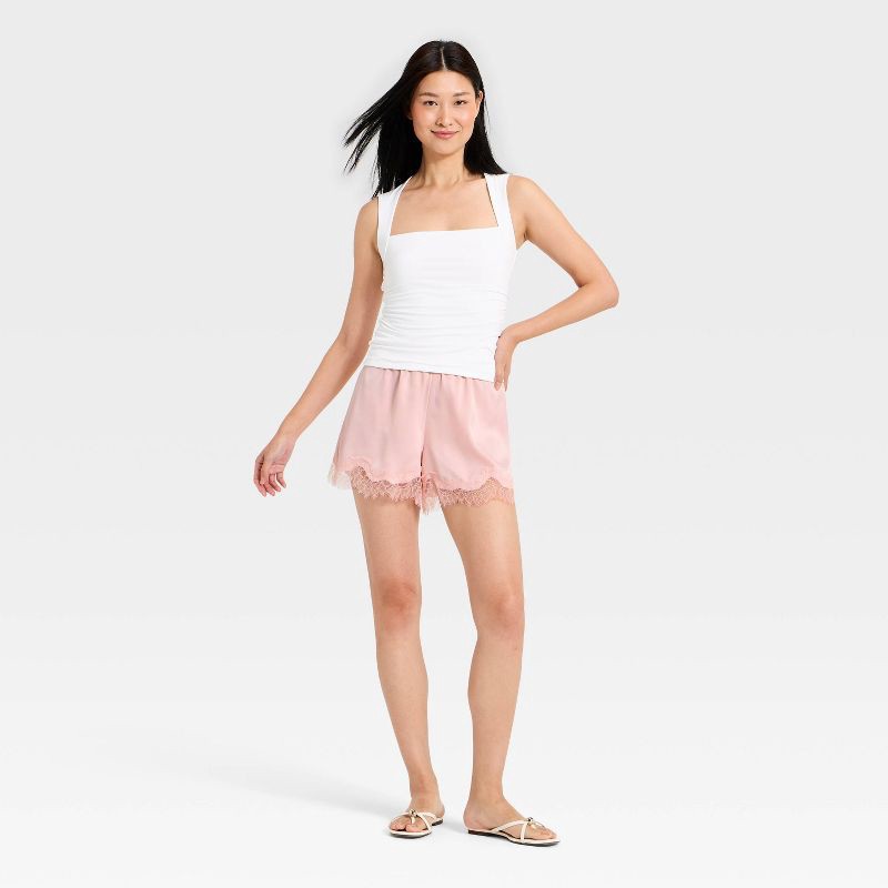 Women's Fashion Pull-On Lace Trim Shorts - A New Day™ Pink XL