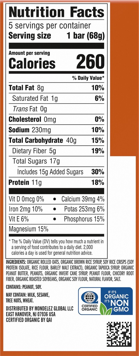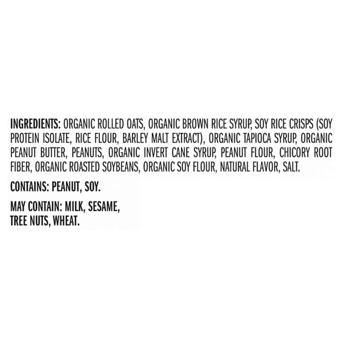 Organic Rolled Oats, Organic Brown Rice Syrup, Soy Rice Crisps (Soy Protein Isolate, Rice Flour, Barley Malt Extract), Organic Tapioca Syrup, Organic Peanut Butter, Peanuts, Organic Invert Cane Syrup,…