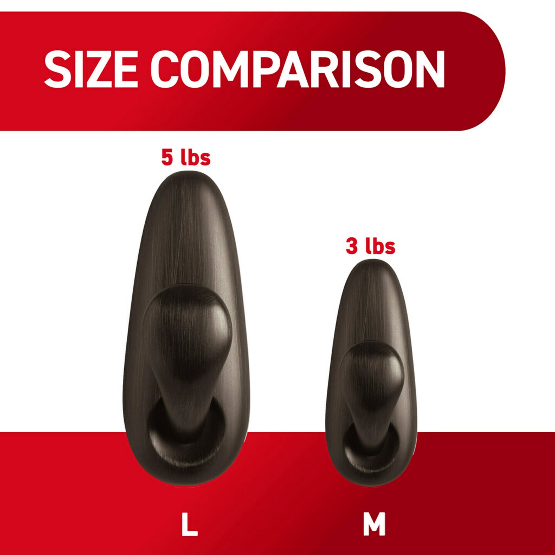 Holds up to 5 pounds: One package of the Command Large Metal Hook includes one large wall hook and two large adhesive strips; each adhesive wall hook can hold up to 5 pounds. Works on a variety of smo…