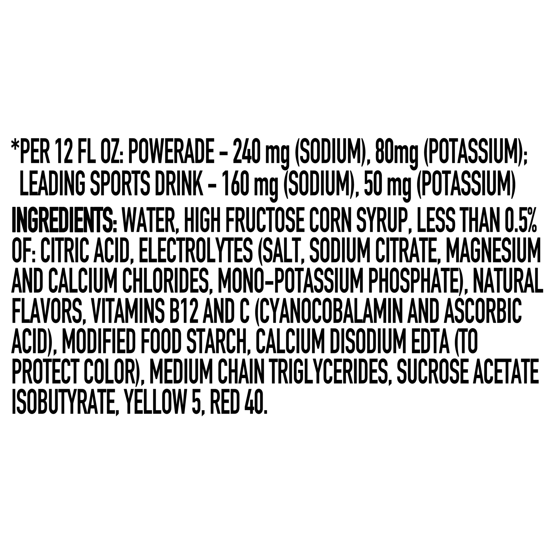 Water, High Fructose Corn Syrup, Less Than 0.5% Of Citric Acid, Electrolytes (Salt, Sodium Citrate, Magnesium And Calcium Chlorides, Mono-Potassium Phosphate), Natural Flavors, Vitamins B12 And C (Cya…
