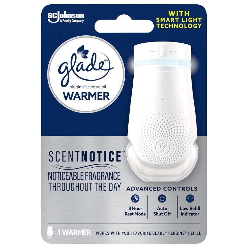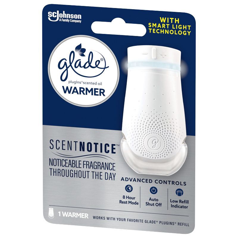 - GLADE® PLUGINS® PLUS: Scented oil warmer with ScentNotice technology for noticeable fragrance through the day